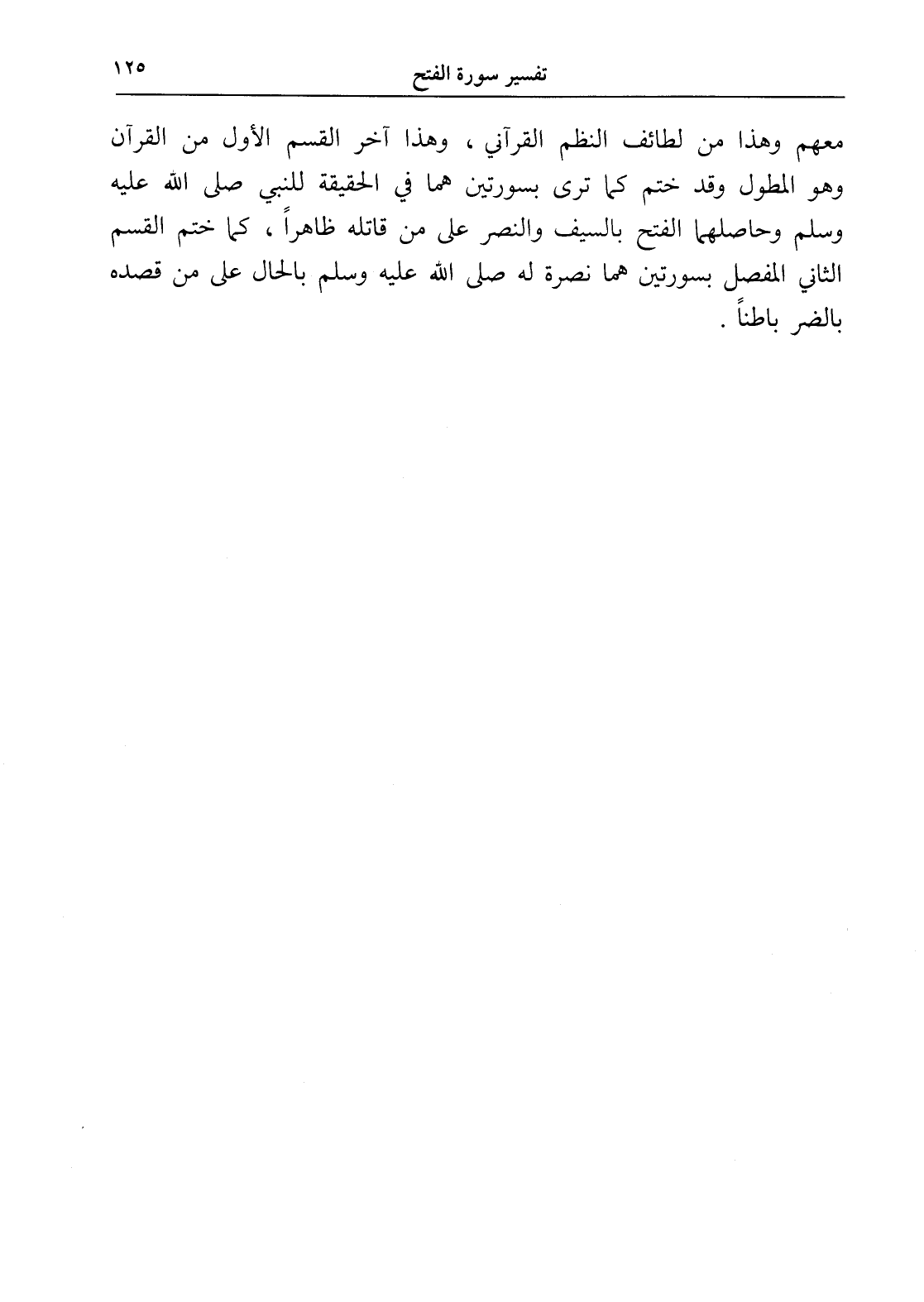 معهم وهذا من لطائف النظم القرآني، وهذا آخر القسم الأول من القرآن وهو المطول وقد ختم كما ترى بسورتين هما في الحقيقة للنبي صلى الله عليه وسلم وحاصلهما الفتح بالسيف والنصر على من قاتله ظاهراً، كما ختم القسم الثاني المفصل بسورتين هما نصرة له صلى الله عليه وسلم بالحال على من قصده بالضر باطناً.