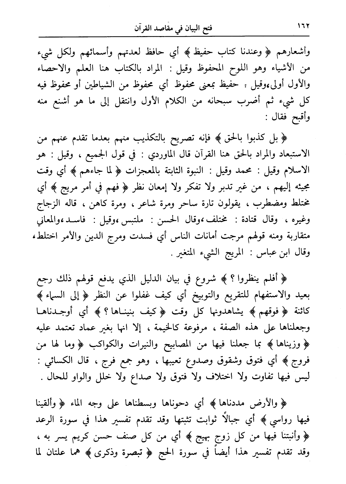 وأشعارهم (وعندنا كتاب حفيظ) أي حافظ لعدتهم وأسمائهم ولكل شيء من الأشياء وهو اللوح المحفوظ وقيل: المراد بالكتاب هنا العلم والإحصاء والأول أولى، وقيل: حفيظ بمعنى محفوظ أي محفوظ من الشياطين أو محفوظ فيه كل شيء ثم أضرب سبحانه من الكلام الأول وانتقل إلى ما هو أشنع منه وأقبح فقال: