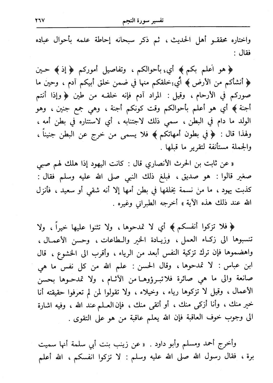 وأخرج أحمد ومسلم وأبو داود " عن زينب بنت أبي سلمة أنها سميت برة، فقال رسول الله صلى الله عليه وسلم: لا تزكوا أنفسكم، الله أعلم