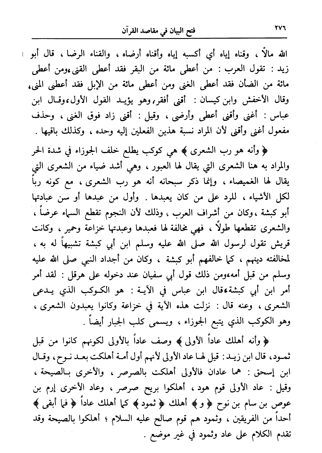 (وأنه أهلك عاداً الأولى) وصف عاداً بالأولى لكونهم كانوا من قبل ثمود، قال ابن زيد: قيل لها عاد الأولى لأنهم أول أمة أهلكت بعد نوح، وقال ابن إسحق: هما عادان فالأولى أهلكت بالصرصر، والأخرى بالصيحة، وقيل: عاد الأولى قوم هود، أهلكوا بريح صرصر، وعاد الأخرى إرم بن عوص بن سام بن نوح