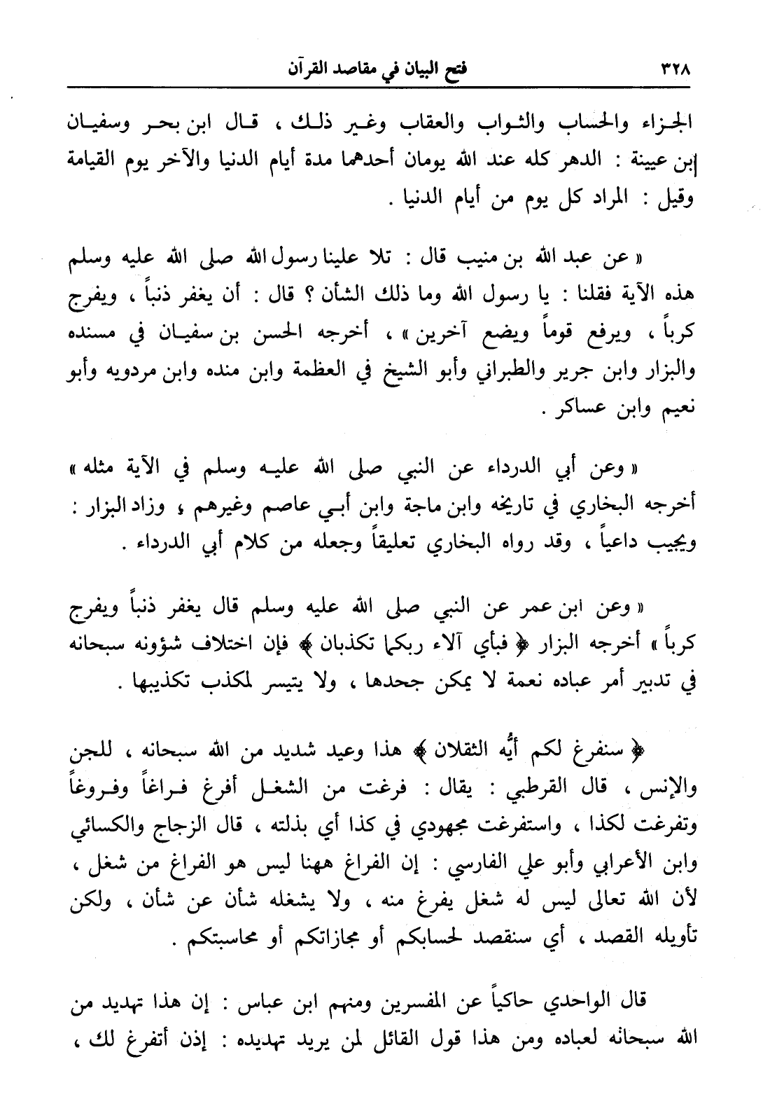 قال الواحدي حاكياً عن المفسرين ومنهم ابن عباس: إن هذا تهديد من الله سبحانه لعباده ومن هذا قول القائل لمن يريد تهديده: إذن أتفرغ لك،