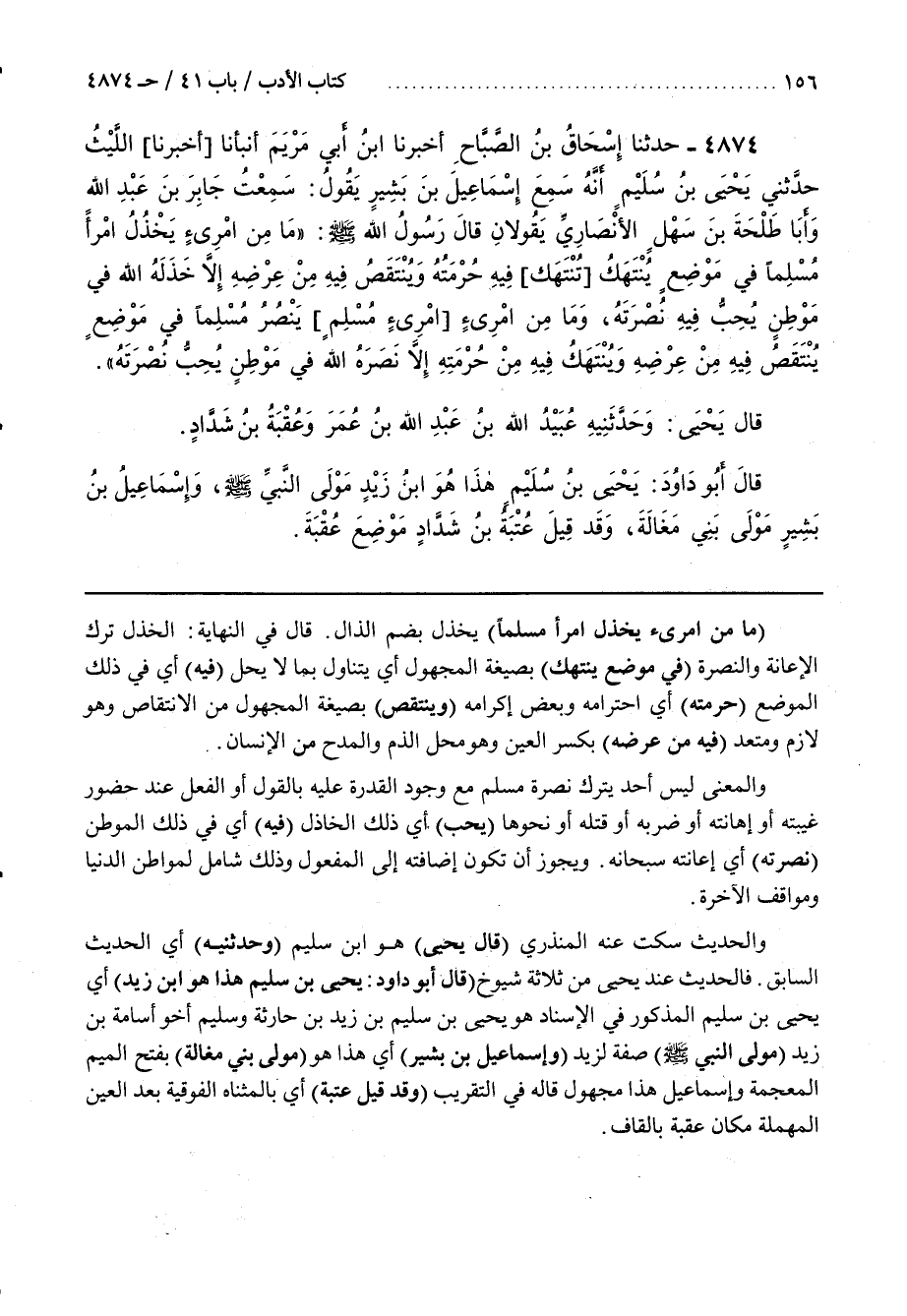 [4884] (مَا مِنَ امْرِئٍ يَخْذُلُ امْرَأً مُسْلِمًا) يَخْذُلُ بِضَمِّ الذَّالِ