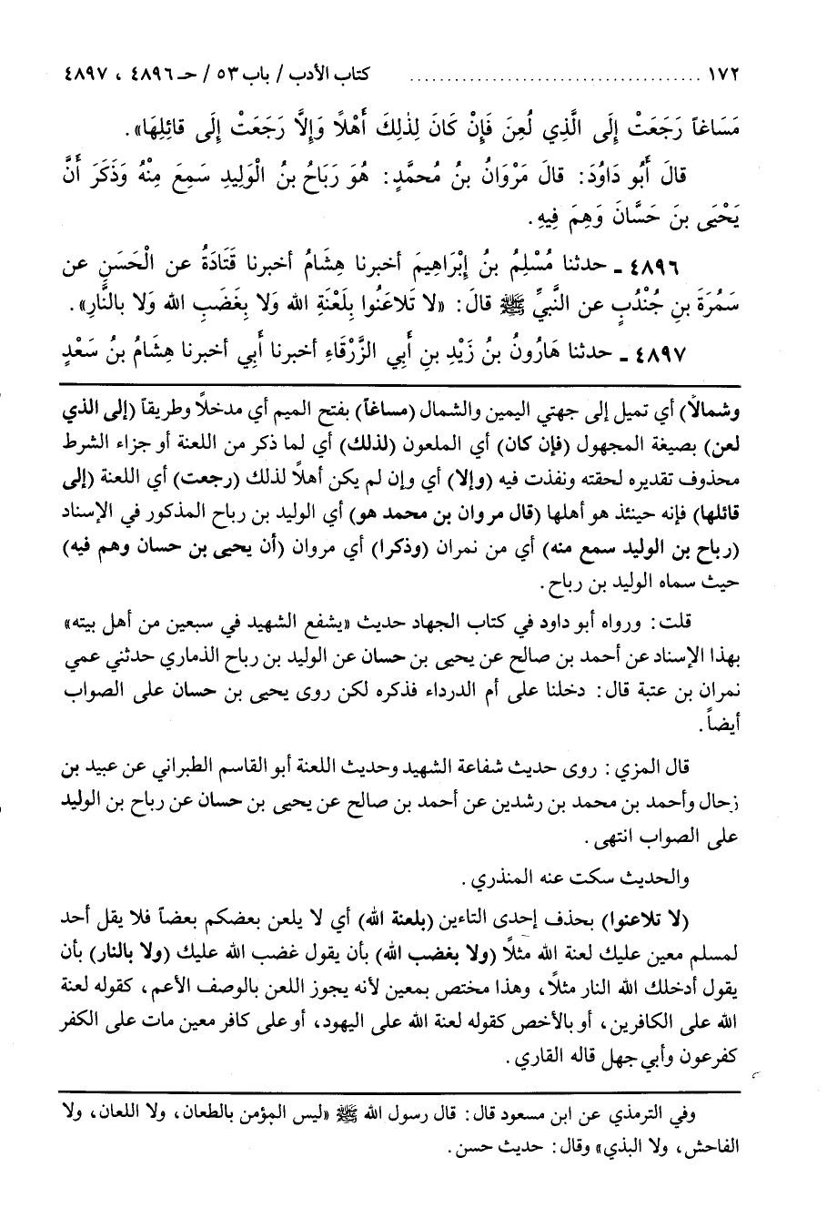 ــــــــــــQوفي الترمذي عن بن مَسْعُود قَالَ قَالَ رَسُول اللَّه صَلَّى اللَّه عَلَيْهِ وَسَلَّمَ لَيْسَ الْمُؤْمِن بِالطَّعَّانِ وَلَا اللَّعَّان ولا الفاحش ولا البذي وَقَالَ حَدِيث حَسَن