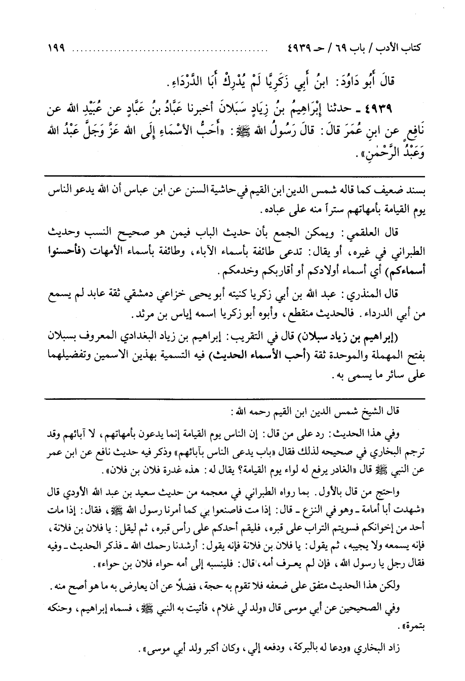 [4949] (إِبْرَاهِيمُ بْنُ زِيَادٍ سَبَلَانَ) قَالَ فِي التَّقْرِيبِ إِبْرَاهِيمُ بْنُ زِيَادٍ الْبَغْدَادِيُّ الْمَعْرُوفُ بِسَبَلَانَ بِفَتْحِ الْمُهْمَلَةِ وَالْمُوَحَّدَةِ ثِقَةٌ (أَحَبُّ الْأَسْمَاءِ الْحَدِيثَ) فِيهِ التَّسْمِيَةُ بِهَذَيْنِ الِاسْمَيْنِ وَتَفْضِيلُهُمَا عَلَى سَائِرِ مَا يُسَمَّى بِهِ