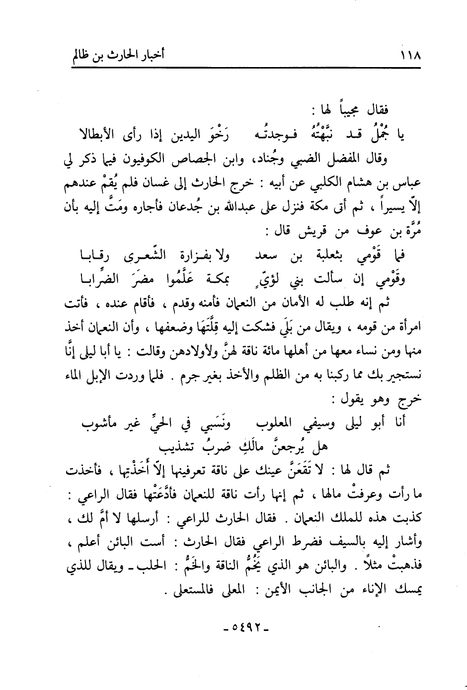 ثُمَّ قَالَ لها: لا تَقَعَنَّ عينك عَلَى ناقة تعرفينها إلّا أَخَذْتِها، فأخذت ما رأت وعرفت ما لها، ثُمَّ إنها رأت ناقة للنعمان فأدَّعَتها فَقَالَ الراعي: