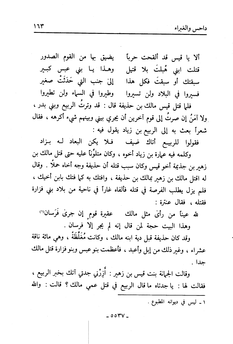 قتلت ابني هُبلتَ بلا قتيل ... وهذا يا بني عبس كبير