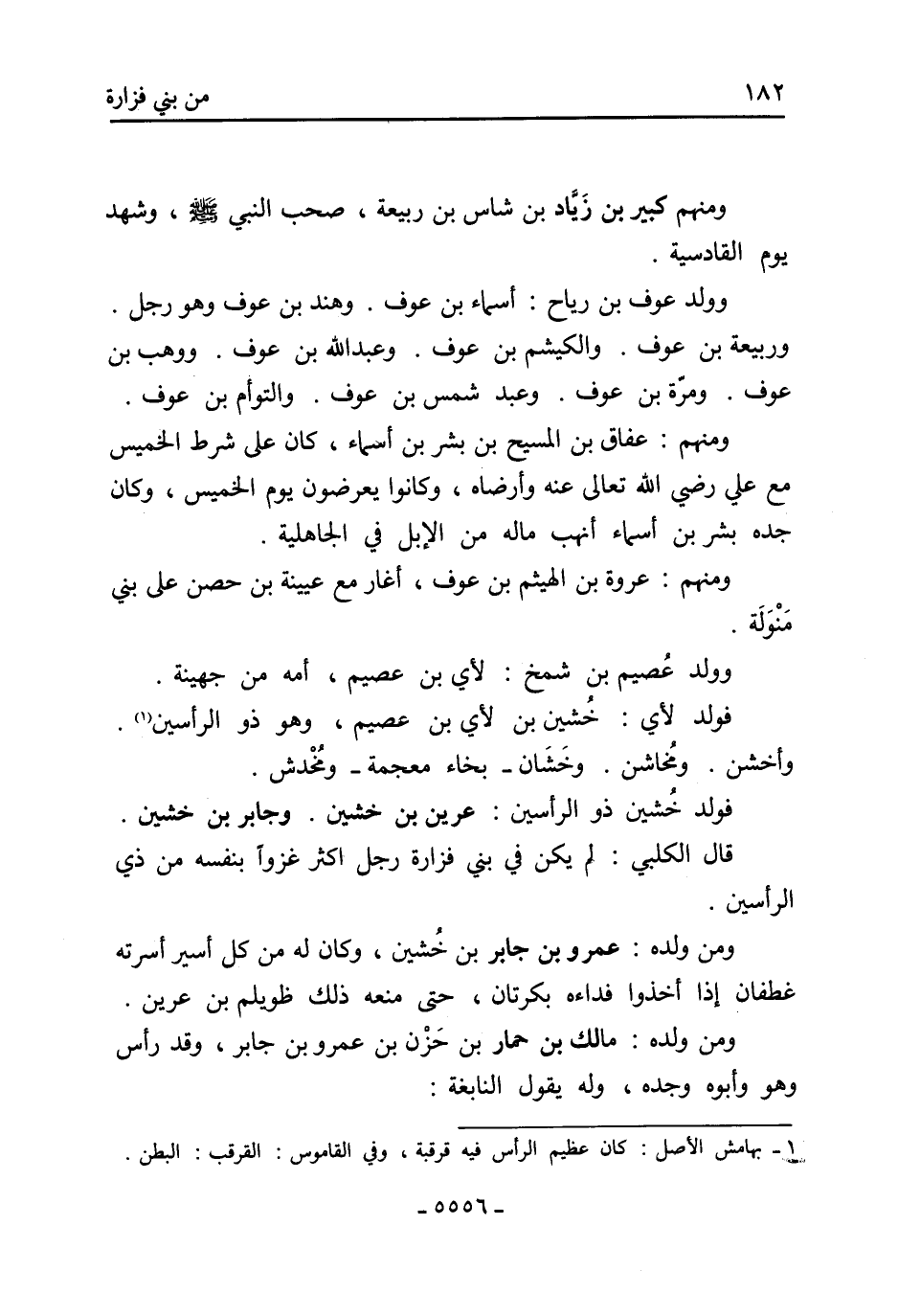 ومن ولده: عَمْرو بْن جَابِر بْن خُشين، وكان لَهُ من كل أسير أسرته غطفان إِذَا أخذوا فداءه بكرتان، حتَّى منعه ذَلِكَ ظويلم بْن عرين.