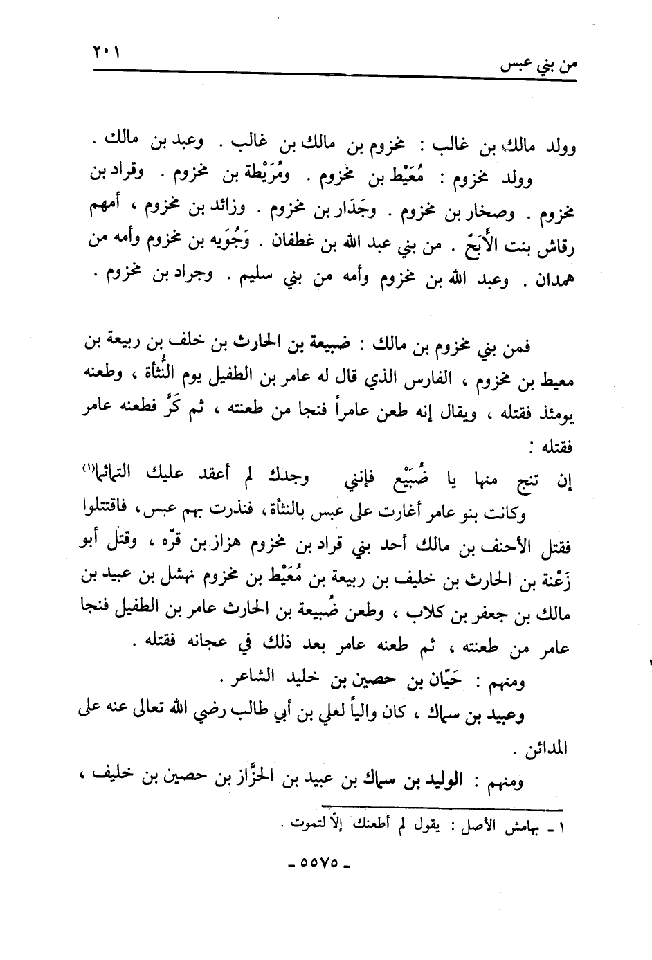 فمن بني مخزوم بْن مالك: ضبيعة بْن الحارث بن خلف بْن ربيعة بْن معيط بْن مخزوم،
