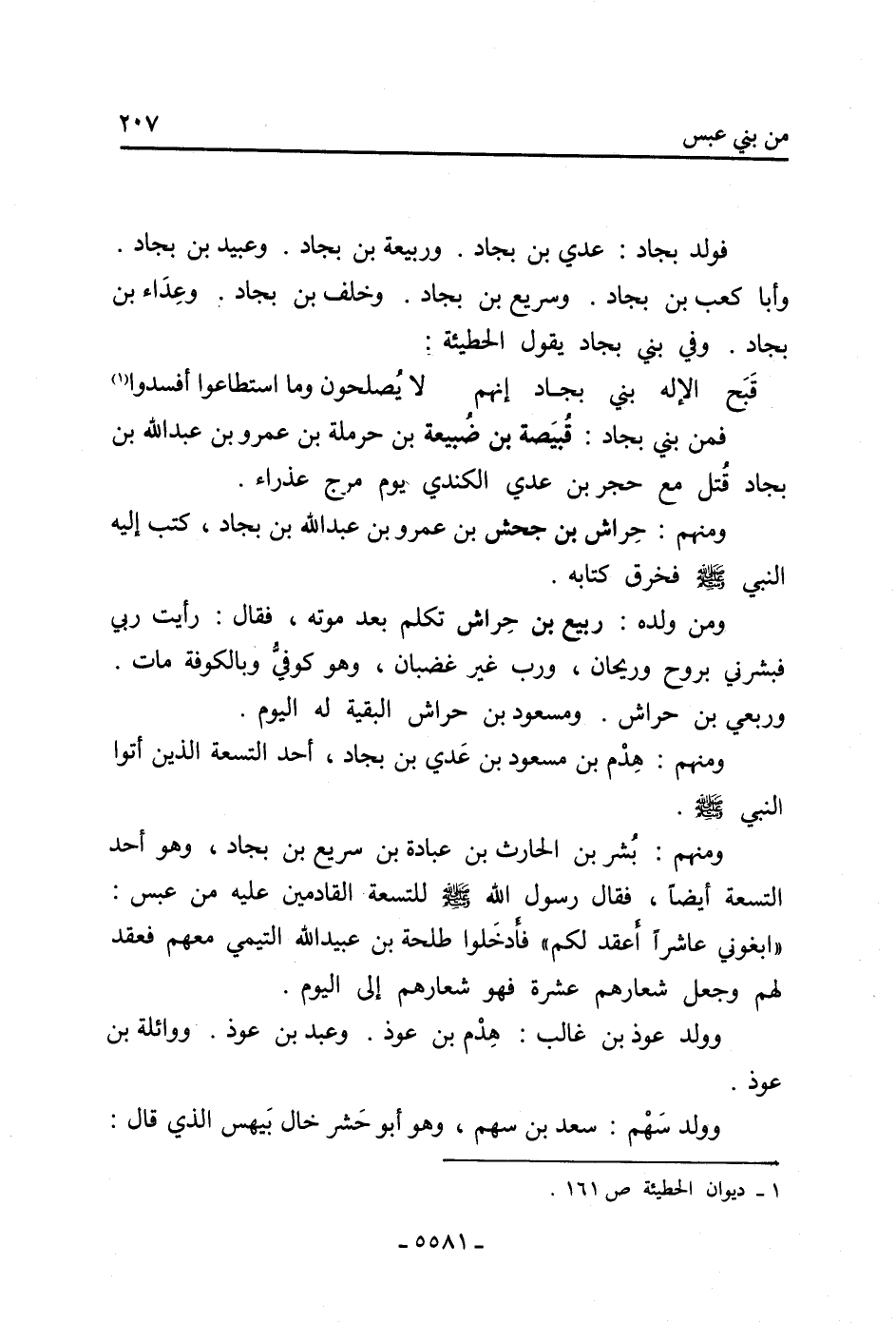 وأبا كعب بْن بجاد. وسريع بْن بجاد. وخلف بْن بجاد. وعِدَاء بْن بجاد. وفي بني بجاد يَقُولُ الحطيئة: