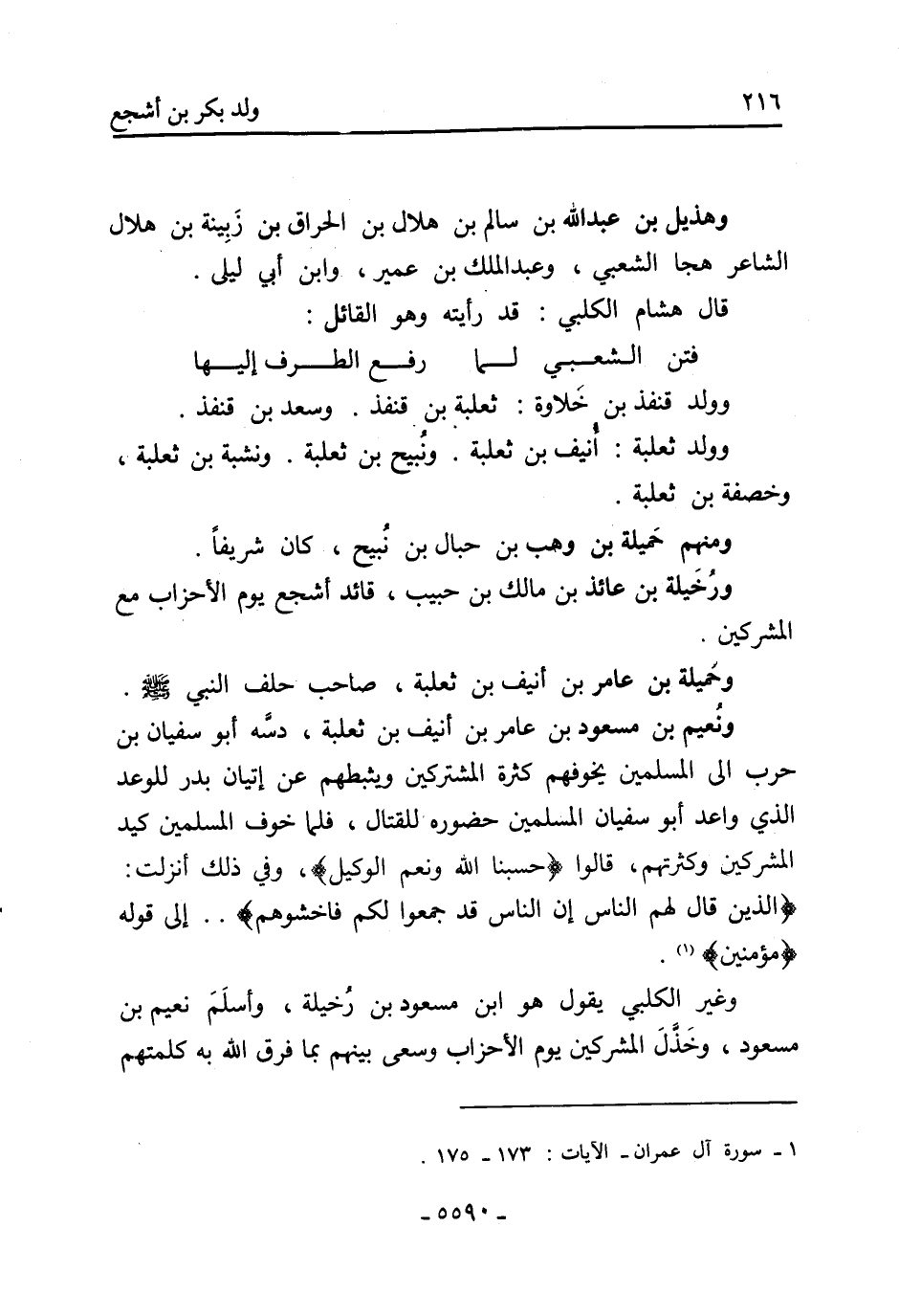 وغير الكلبي يقول هو ابْنُ مَسْعُود بْن رُخيلة، وأسلَمَ نعيم بْن مَسْعُود، وخَذَّلَ المشركين يَوْم الأحزاب وسعى بينهم بما فرق الله به كلمتهم