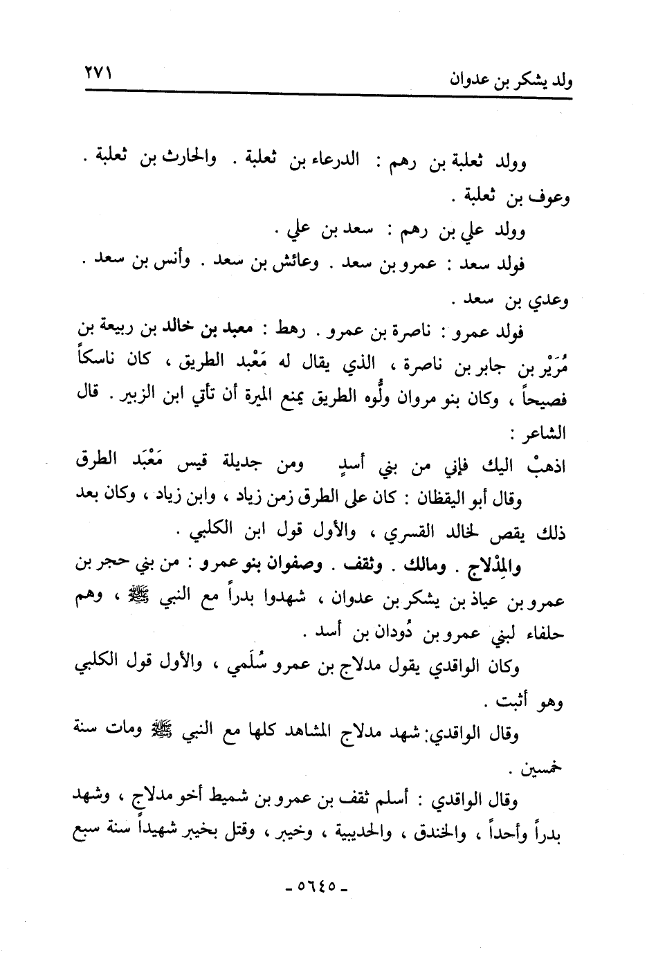 والمِدْلاج. ومالك. وثقف. وصفوان بنو عَمْرو: من بني حجر بْن عَمْرو بْن عياذ بْن يشكر بْن عدوان، شهدوا بدرا مَعَ النَّبِيّ صَلَّى اللَّهُ عَلَيْهِ وَسَلَّمَ، وهم حلفاء لبني عَمْرو بْن دُودان بْن أسد.