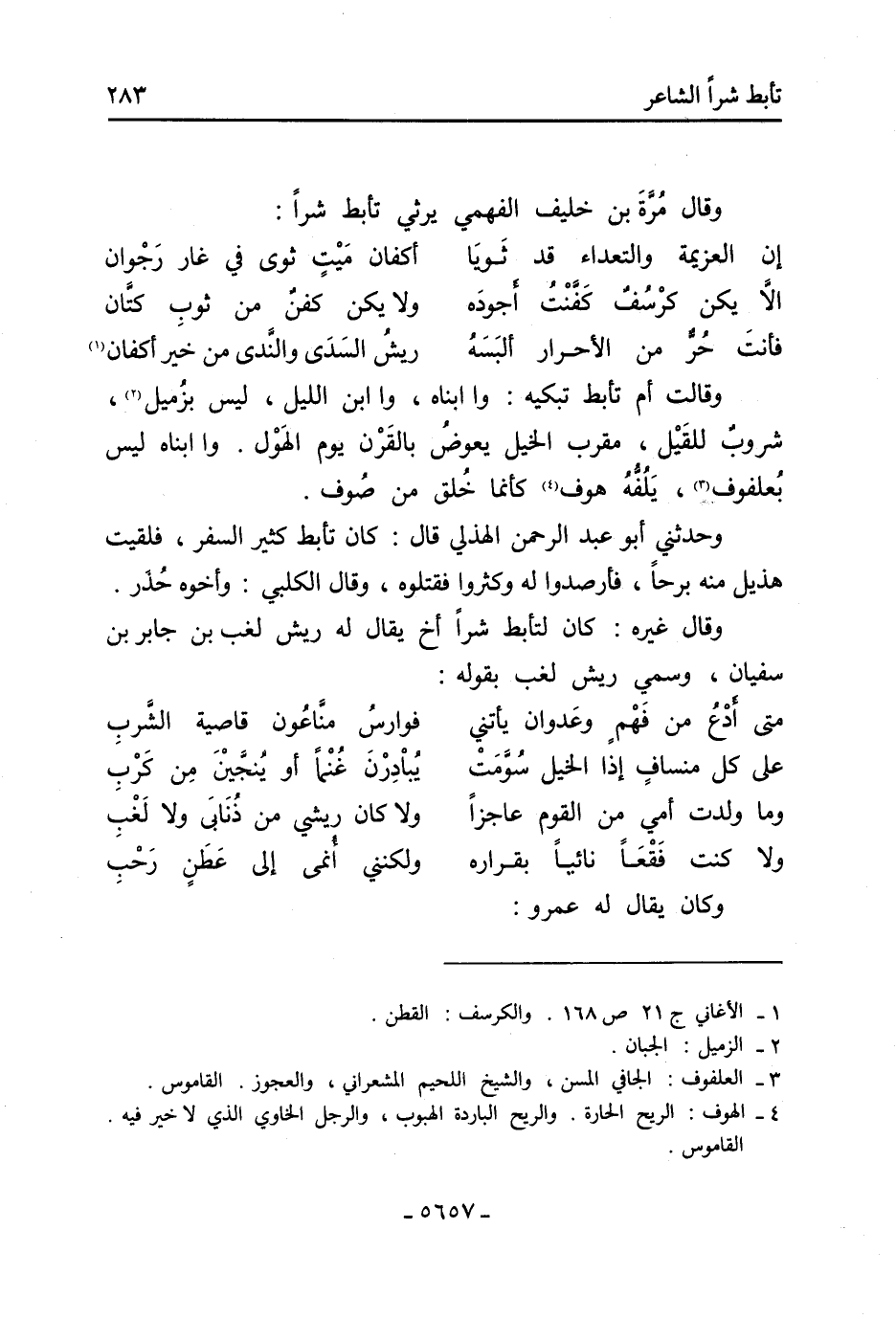 وقَالَ مُرَّةَ بْن خليف الفهمي يرثي تأبط شرًا: