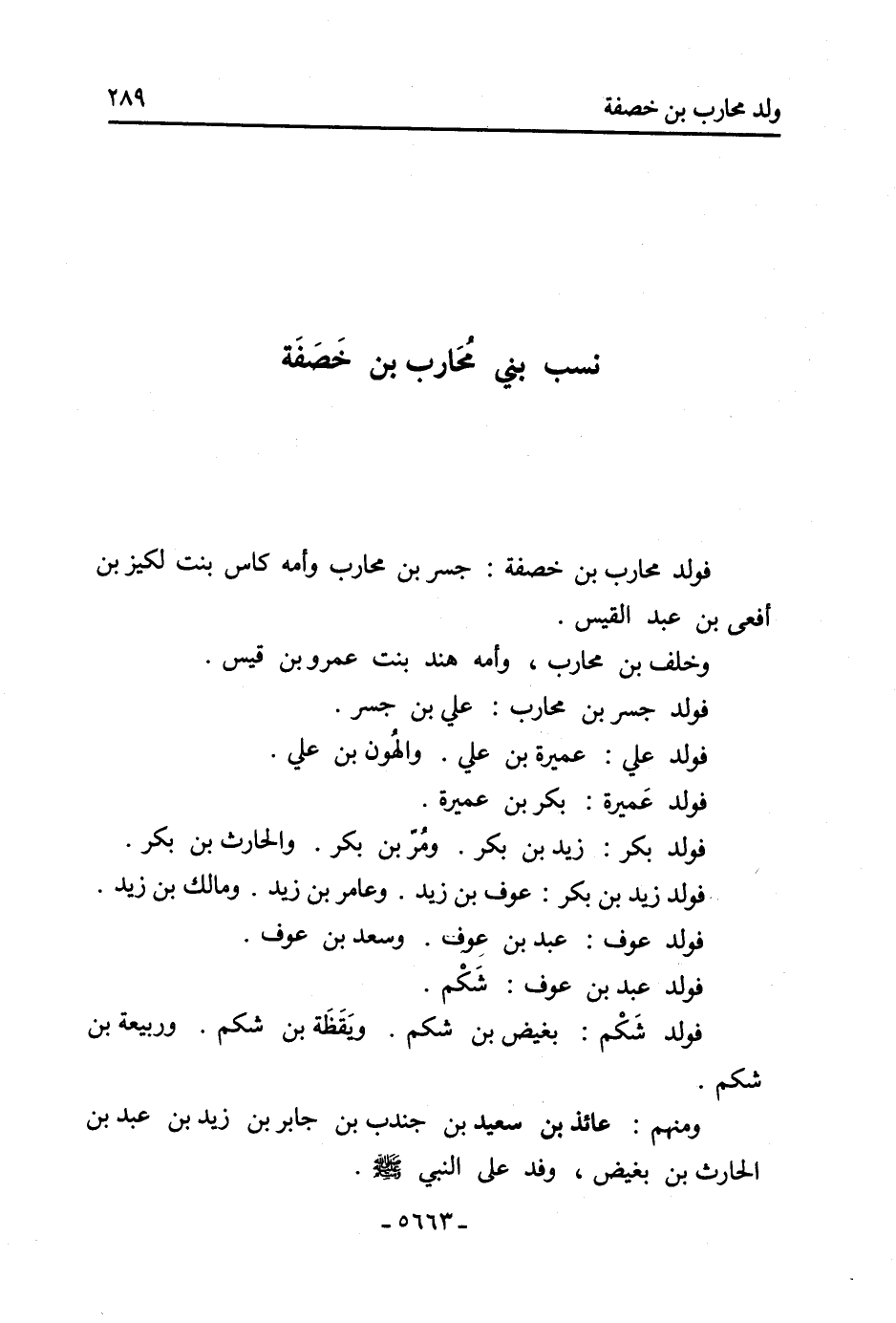 نسب بني مُحَارب بْن خَصَفَة