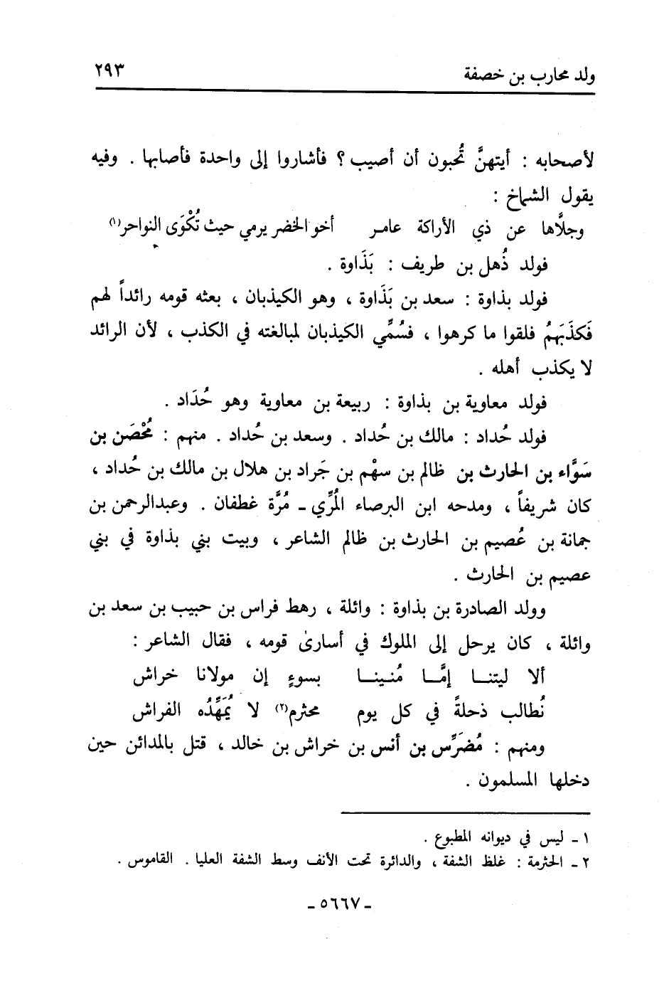 وولد الصادرة بْن بذاوة: وائلة، رهط فراس بْن حبيب بْن سعد بْن وائلة، كَانَ يرحل إلى الملوك فِي أسارى قومه، فَقَالَ الشَّاعِر:
