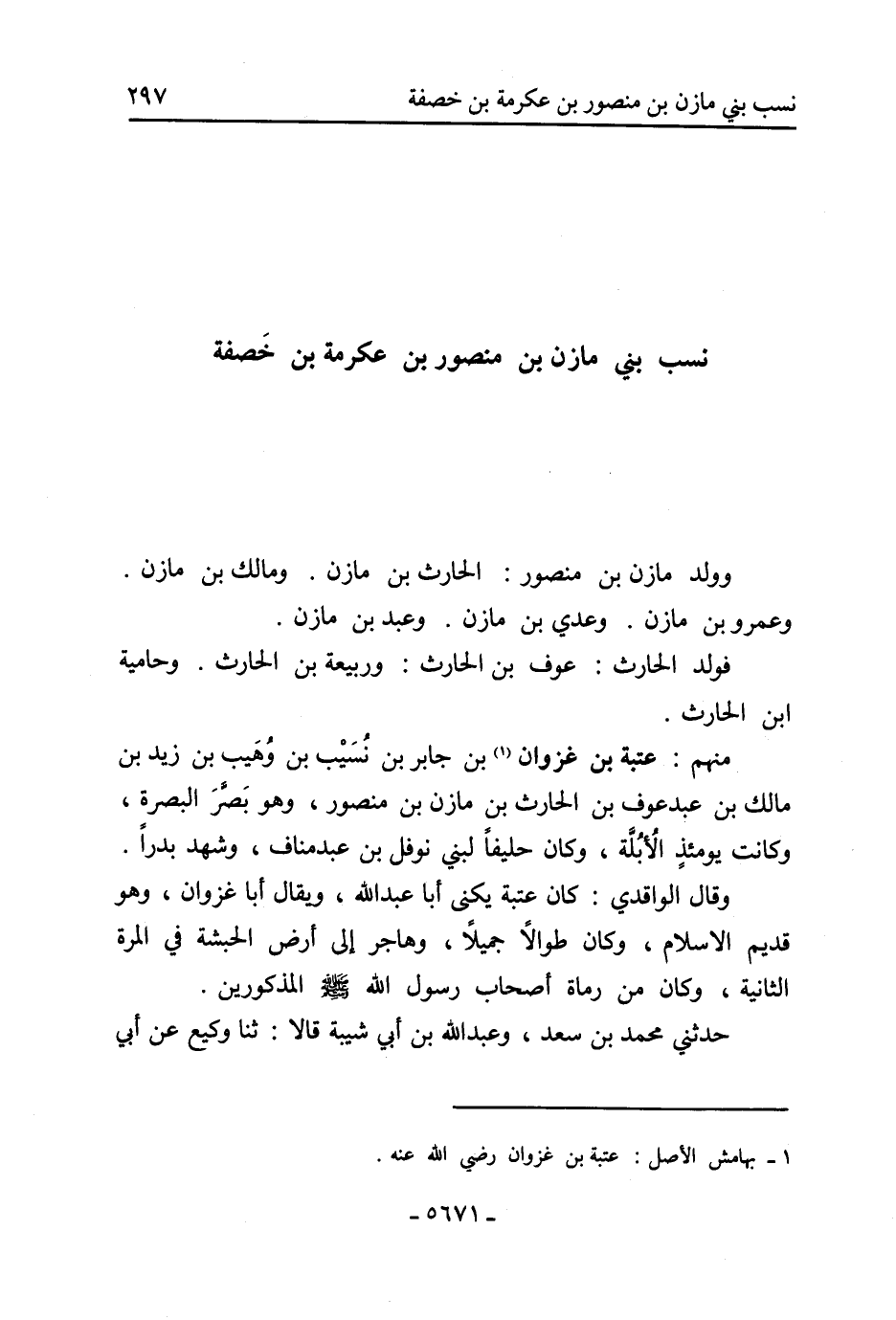 نسب بني مازن بْن مَنْصُور بْن عكرمة بْن خَصَفَة