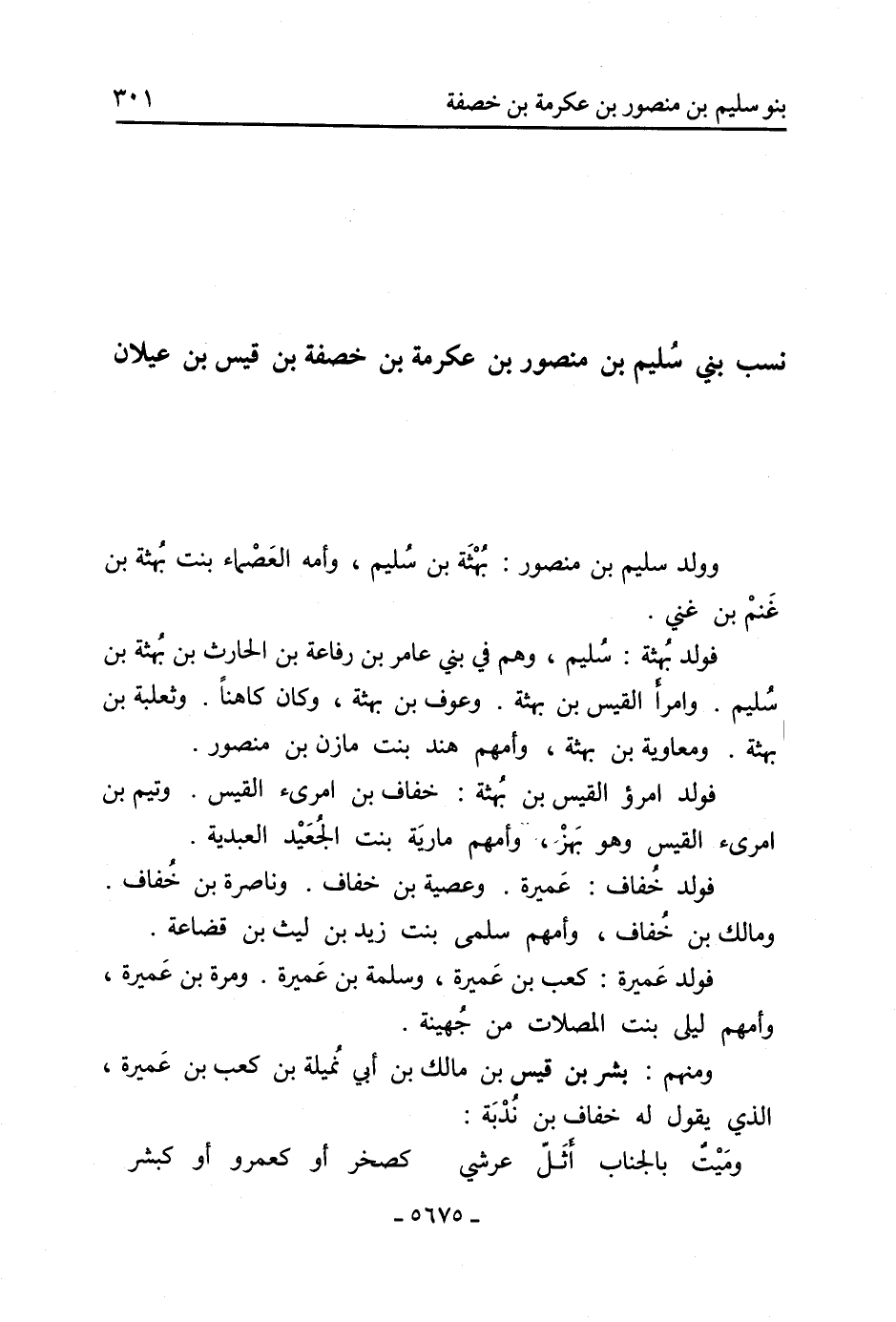 نسب بني سُليم بْن مَنْصُور بْن عكرمة بْن خَصَفَة بْن قيس بْن عيلان