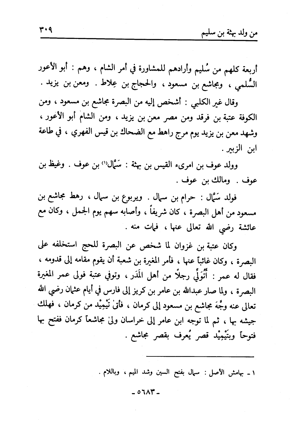 فولد سَمَّال: حرام بْن سمال. ويربوع بْن سمال، رهط مجاشع بْن مَسْعُود من أهل البصرة، كَانَ شريفًا، وأصابه سهم يَوْم الجمل، وكان مَعَ عَائِشَة رَضِي اللَّه تَعَالى عَنْهَا، فمات مِنْهُ.