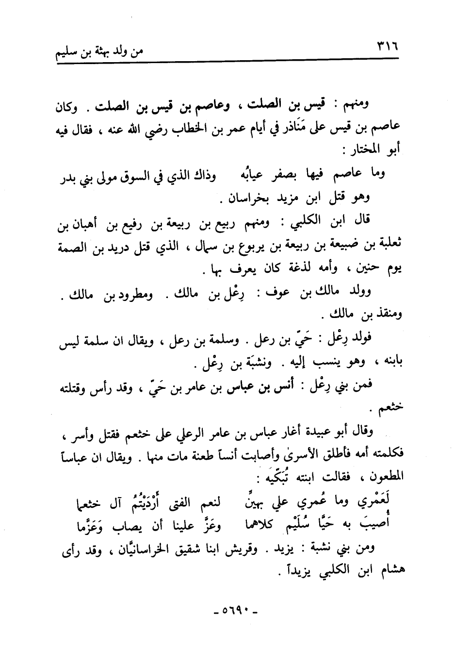 ومنهم: قيس بْن الصلت، وعاصم بْن قيس بْن الصلت. وكان عاصم بْن قيس عَلَى مَنَاذر فِي أيام عُمَر بْن الخطاب رَضِي اللَّه عَنْهُ، فَقَالَ فِيهِ أَبُو الْمُخْتَار:
