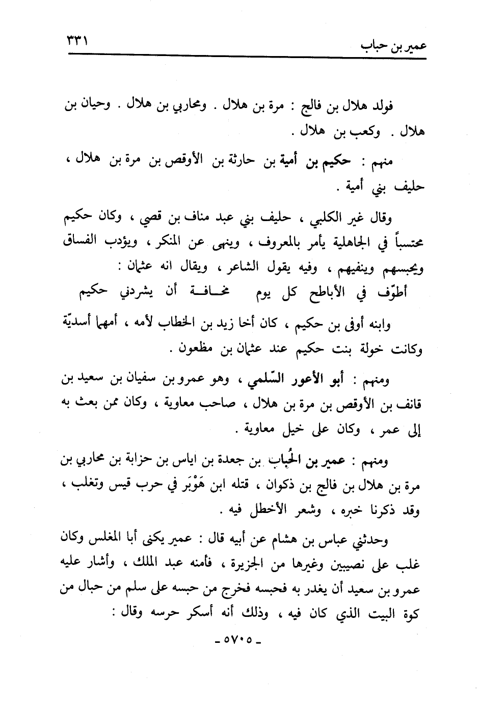 وحدَّثني عَبَّاس بْن هشام عن أَبِيهِ قَالَ: عمير يكنى أبا المغلس وكان غلب على نصيبين وغيرها من الجزيرة، فأمنه عَبْد الملك، وأشار عَلَيْهِ عَمْرو بْن سَعِيد أن يغدر بِهِ فحبسه فخرج من حبسه عَلَى سلم من حبال من كوة البيت الَّذِي كَانَ فِيهِ، وذلك أَنَّهُ أسكر حرسه وقَالَ: