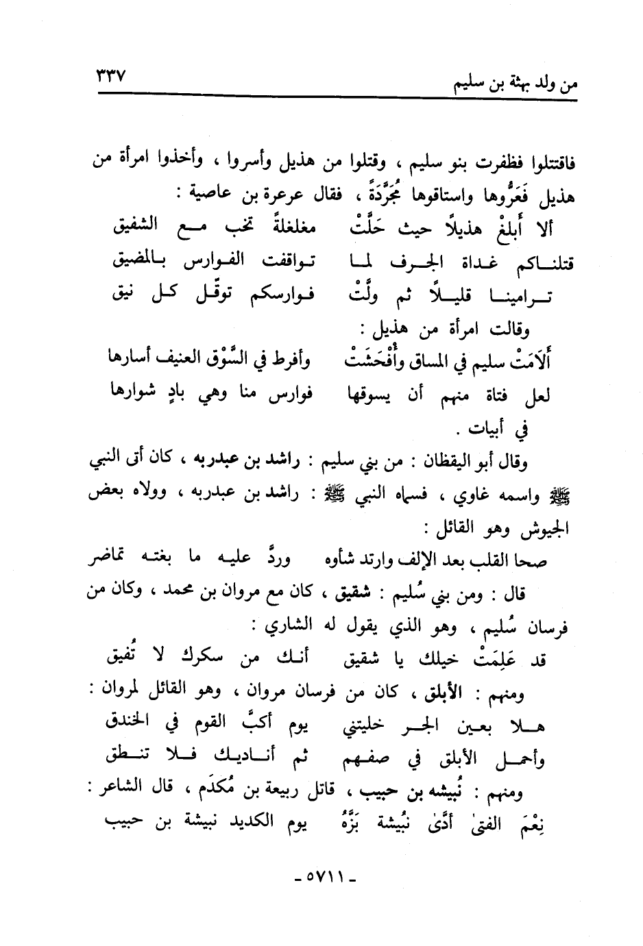 فاقتتلوا فظفرت بنو سليم، وقتلوا من هذيل وأسروا، وأخذوا امرأة من هذيل فعرّوها واستاقوها مُجَرَّدَةً، فَقَالَ عرعرة بْن عاصية: