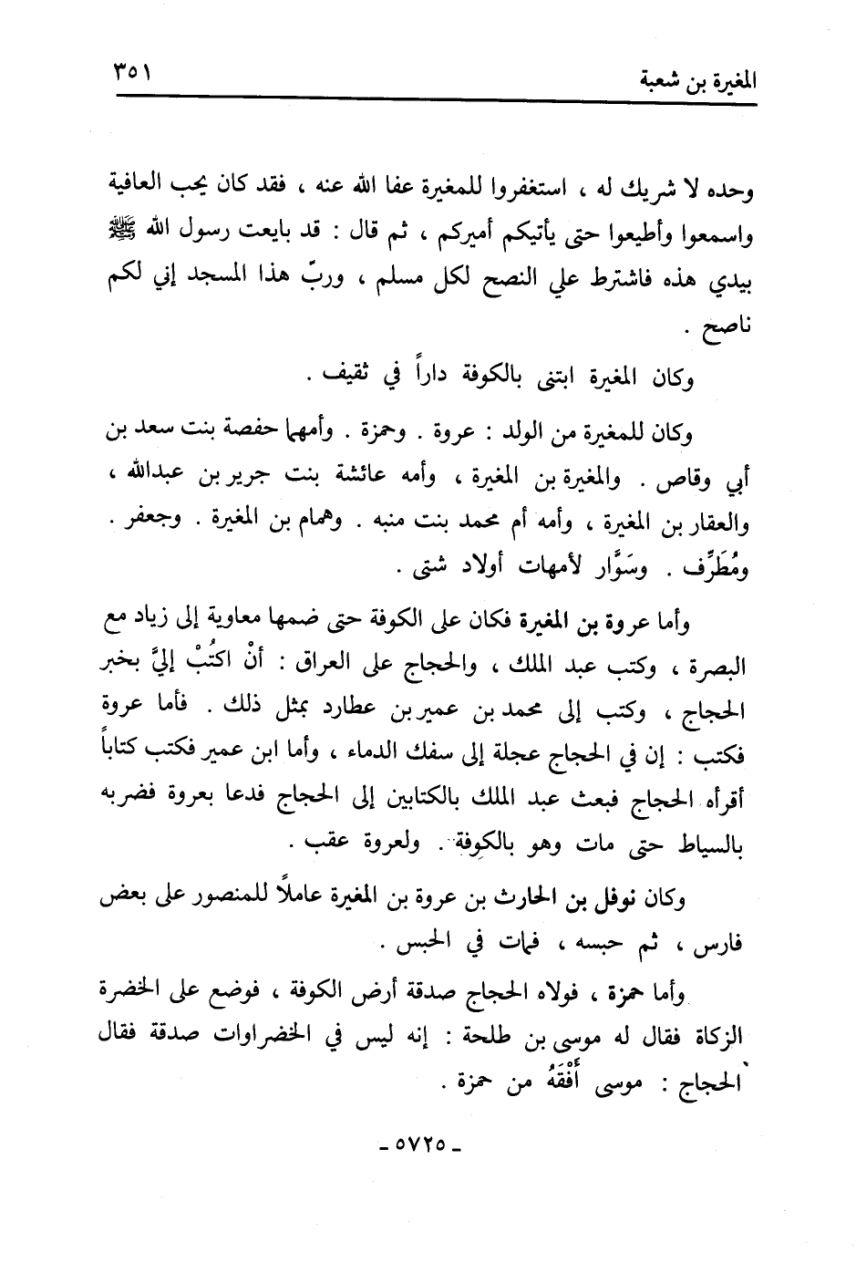 وأمَّا عروة بْن المغيرة فكان عَلَى الكوفة حتَّى ضمها معاوية إلى زياد مَعَ البصرة، وكتب عَبْد الملك، والحجاج عَلَى العراق: أنِ اكتُبْ إليَّ بخبر الحجاج، وكتب إلى مُحَمَّد بْن عمير بْن عطارد بمثل ذَلِكَ. فأمَّا عروة فكتب: إن فِي الحجاج عجلة إلى سفك الدماء، وأمَّا ابْنُ عمير فكتب كتابًا أقرأه الحجاج فبعث عَبْد الملك بالكتابين إِلَى الحجاج فدعا بعروة فضربه بالسياط حَتَّى مات وهو بالكوفة. ولعروة عقب.