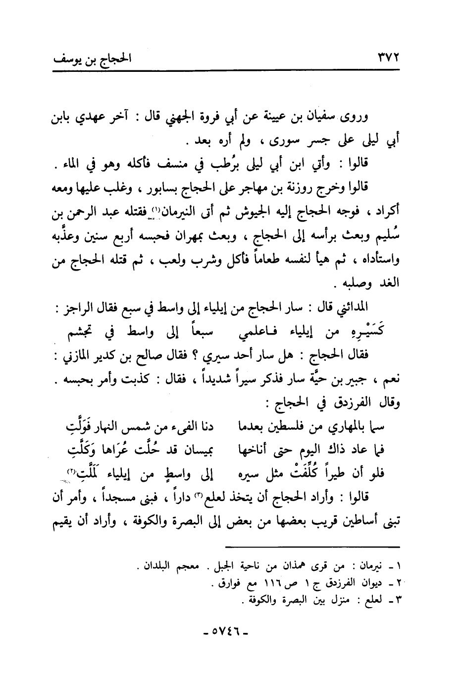 المدائني قَالَ: سار الحجاج من إيلياء إلى واسط فِي سبع فَقَالَ الراجز: