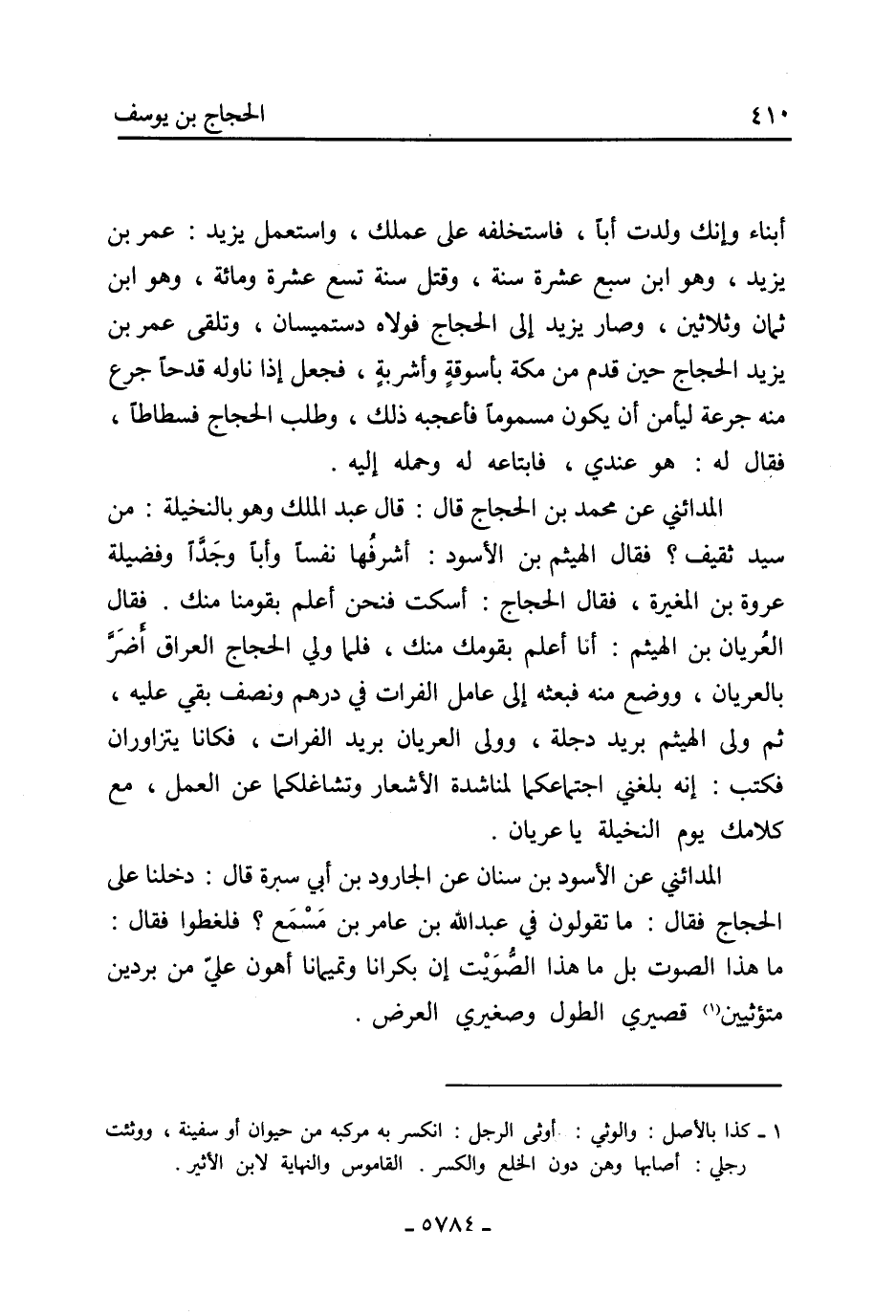 [1] كذا بالأصل: والوثي: أوثى الرجل: انكسر به مركبه من حيوان أو سفينة، ووثئت رجلي: أصابها وهن دون الخلع والكسر. القاموس والنهاية لابن الأثير.
