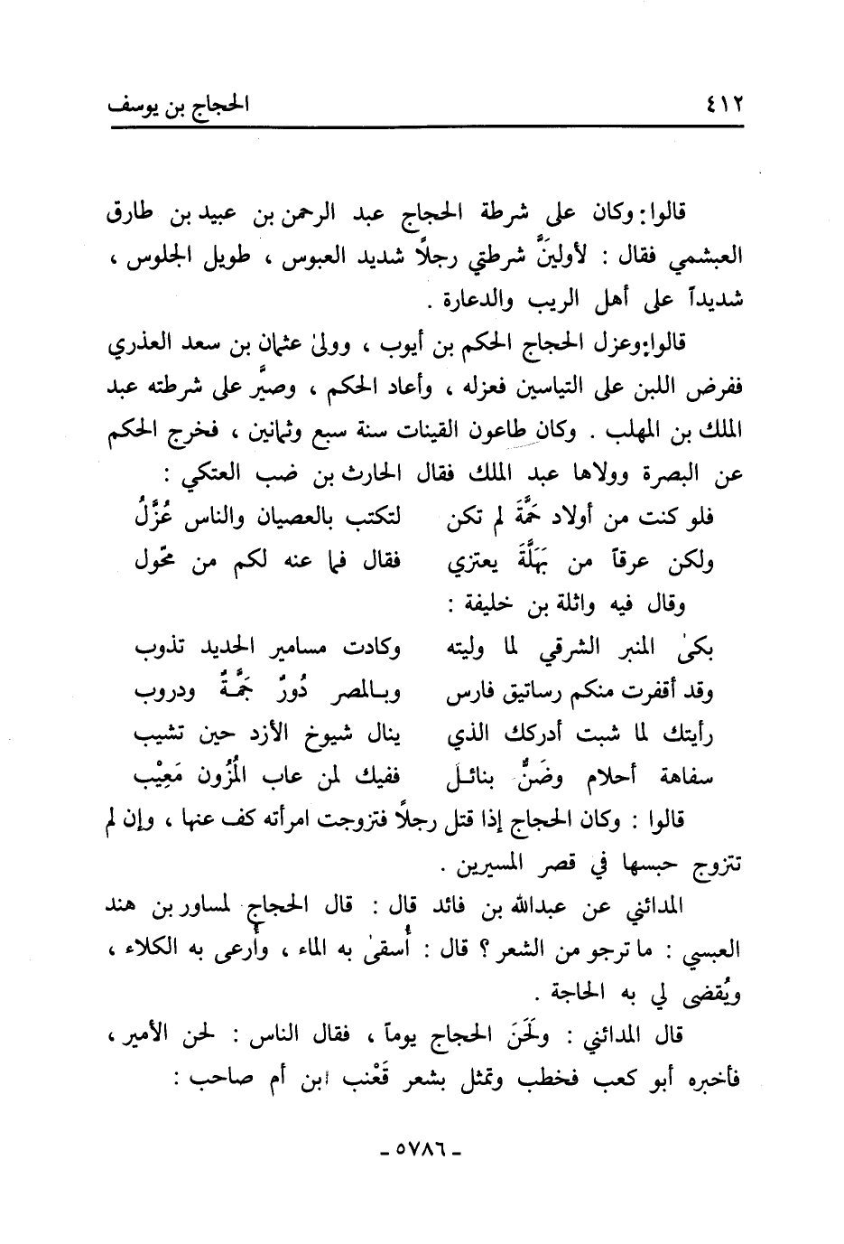 قَالُوا: وَكَانَ الحجاج إِذَا قتل رجلًا فتزوجت امرأته كف عَنْهَا، وإن لم تتزوج حبسها فِي قصر المسيرين.