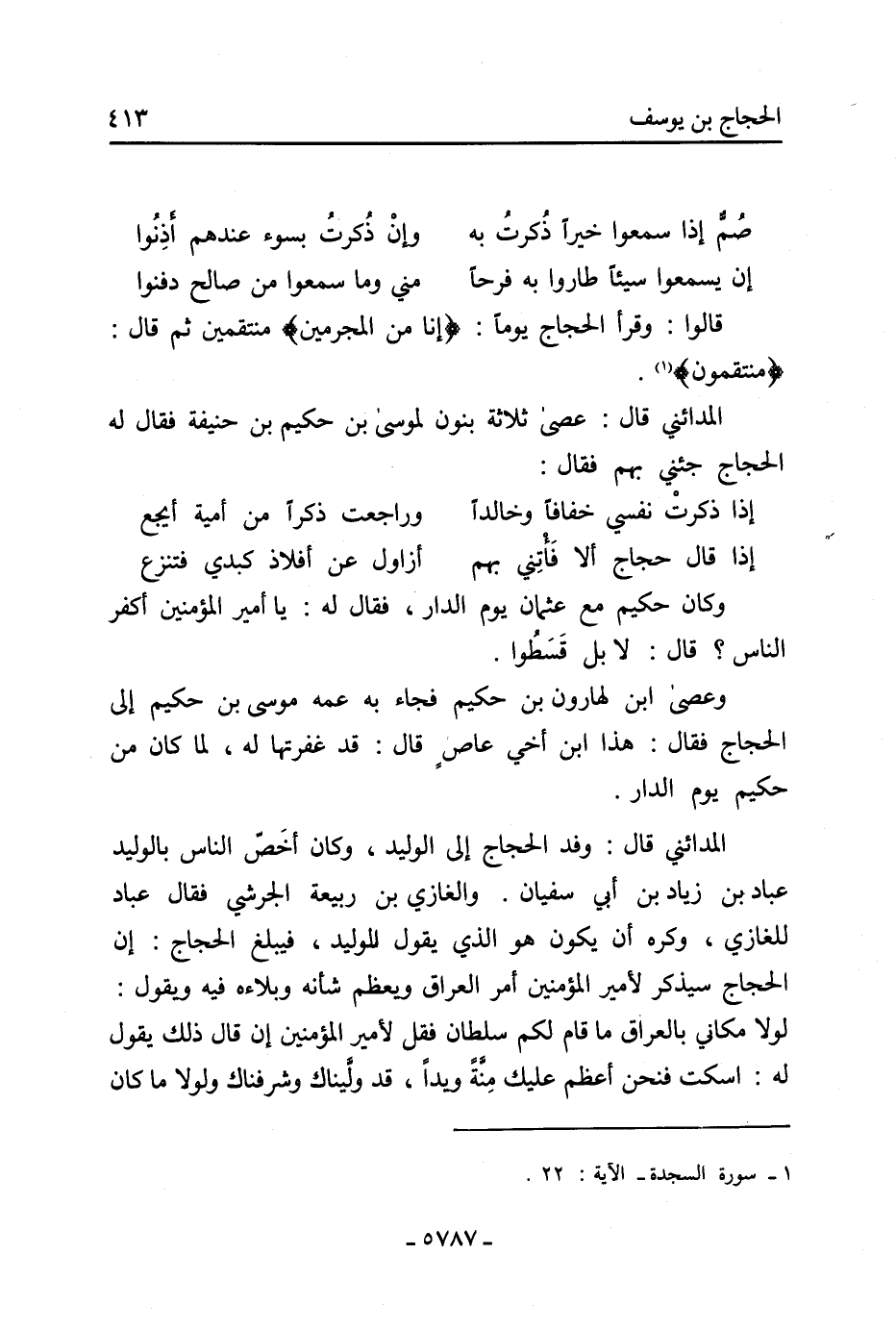 قَالُوا: وقرأ الحجاج يومًا: إِنَّا من المجرمين منتقمين ثم قال: