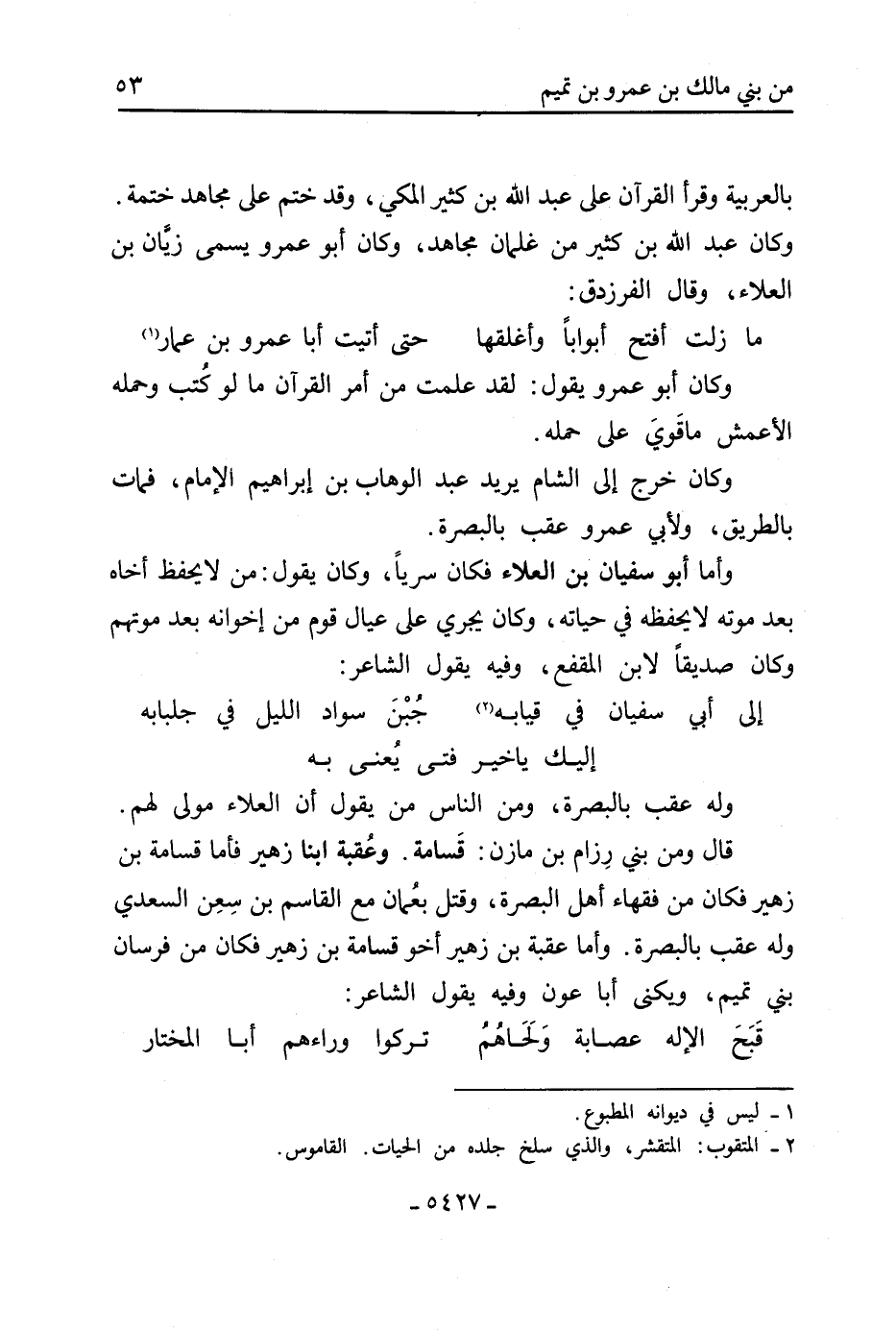 ما زلت أفتح أبوابًا وأغلقها ... حتَّى أتيت أبا عَمْرو بْن عمار [1]