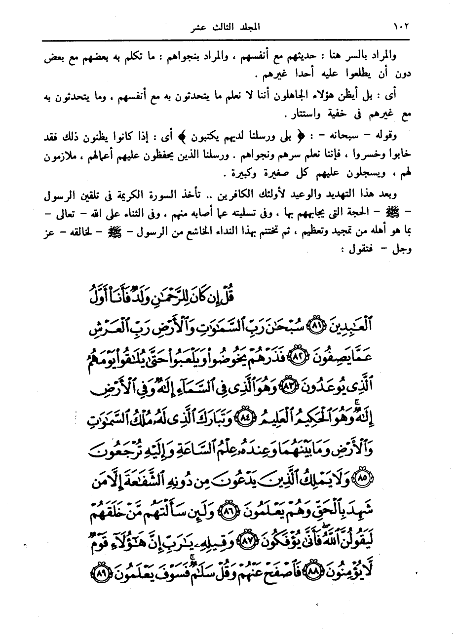 وبعد هذا التهديد والوعيد لأولئك الكافرين.. تأخذ السورة الكريمة في تلقين الرسول صلّى الله عليه وسلّم الحجة التي يجابهم بها، وفي تسليته عما أصابه منهم، وفي الثناء على الله- تعالى- بما هو أهله من تمجيد وتعظيم، ثم تختتم بهذا النداء الخاشع من الرسول صلّى الله عليه وسلّم لخالقه- عز وجل- فتقول: