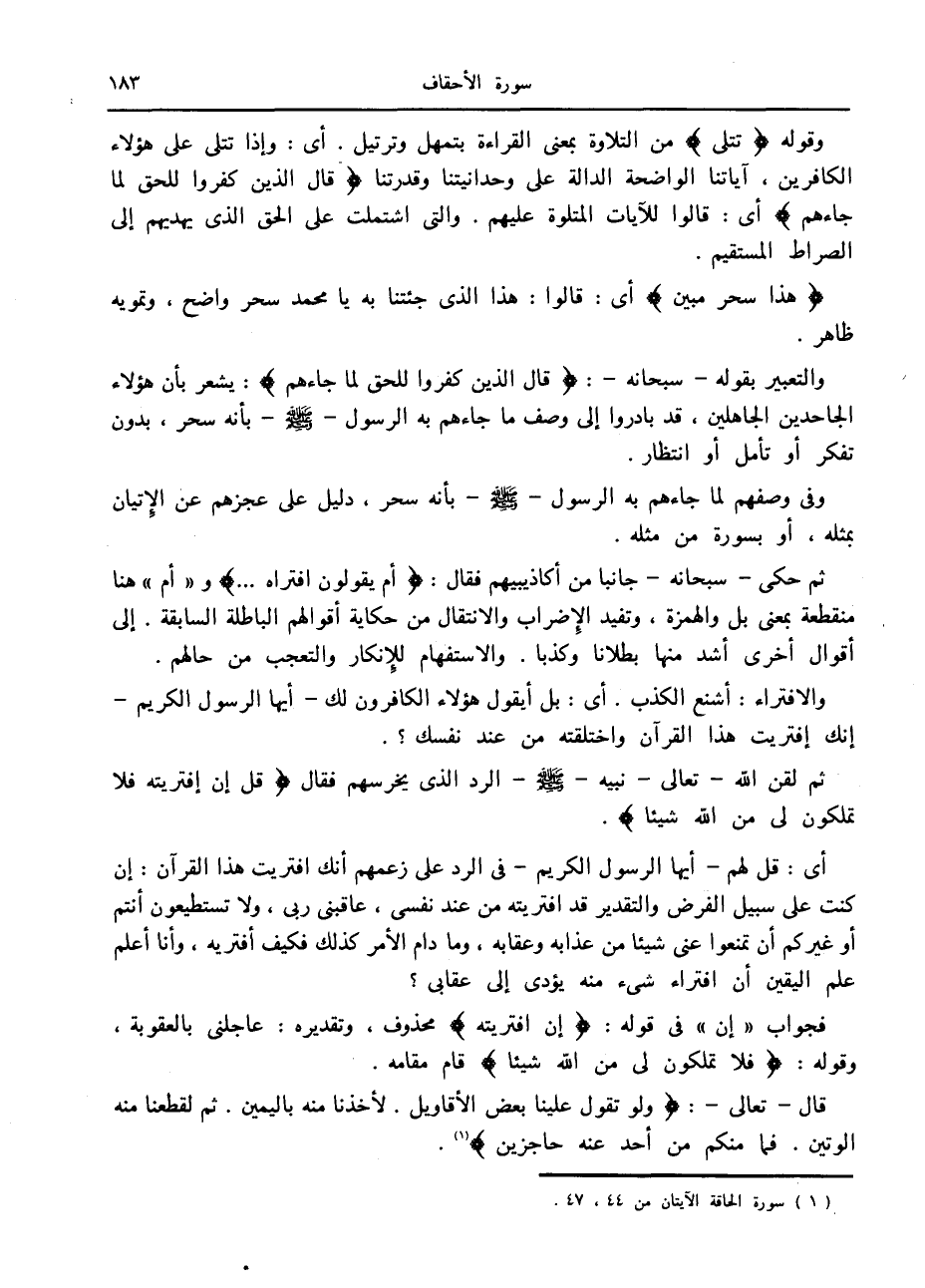 ثم حكى- سبحانه- جانبا من أكاذيبهم فقال: أَمْ يَقُولُونَ افْتَراهُ ... و «أم» هنا منقطعة بمعنى بل والهمزة، وتفيد الإضراب والانتقال من حكاية أقوالهم الباطلة السابقة. إلى أقوال أخرى أشد منها بطلانا وكذبا. والاستفهام للإنكار والتعجب من حالهم.