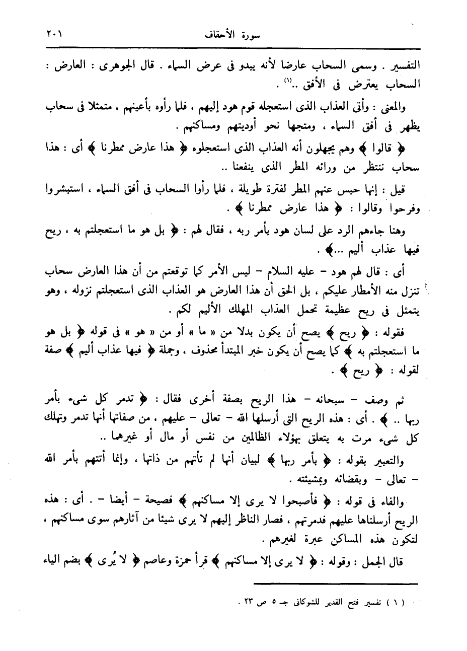 (1) تفسير فتح القدير للشوكانى ج 5 ص 23.