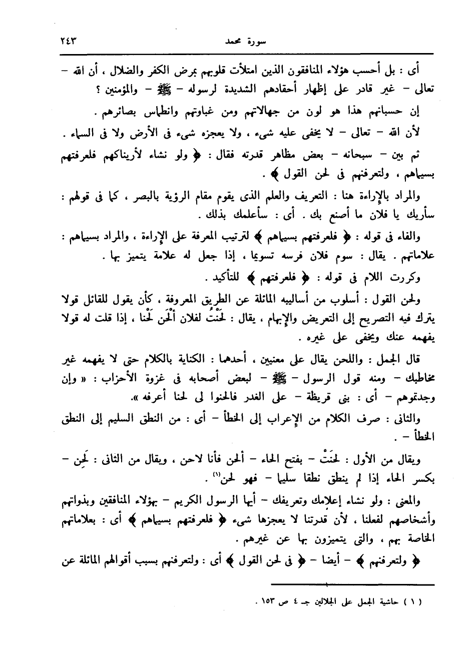 (1) حاشية الجمل على الجلالين ج 4 ص 153.