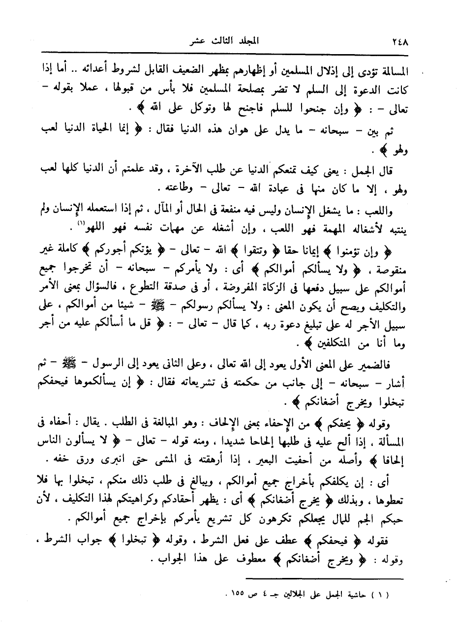 (1) حاشية الجمل على الجلالين ج 4 ص 155.