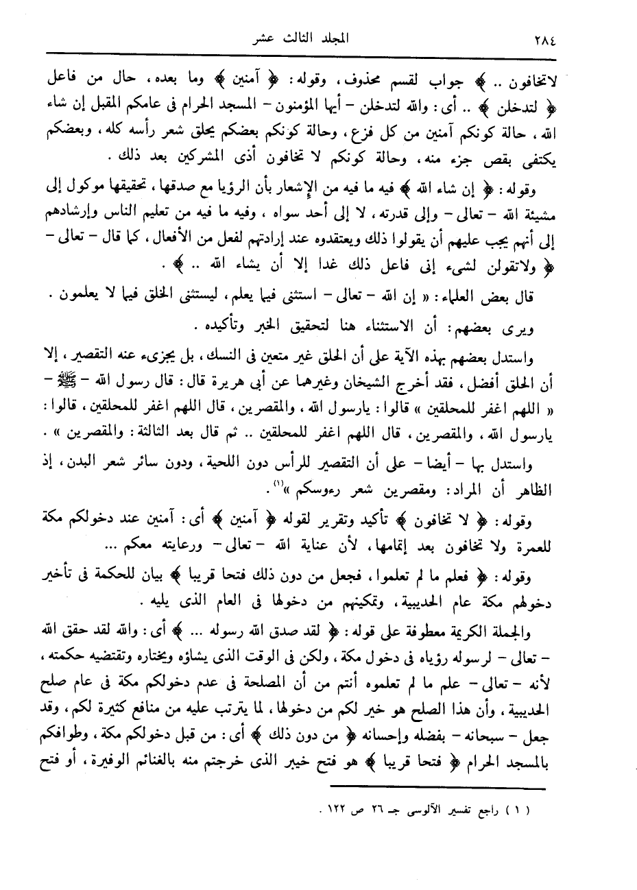 (1) راجع تفسير الآلوسى ج 26 ص 122.