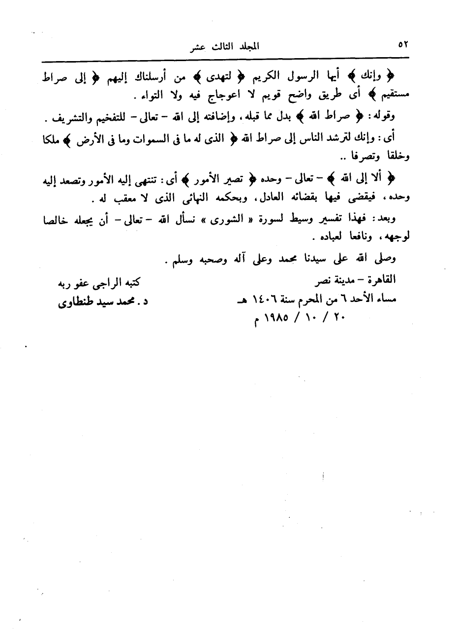 وبعد: فهذا تفسير وسيط لسورة «الشورى» نسأل الله- تعالى- أن يجعله خالصا لوجهه، ونافعا لعباده.