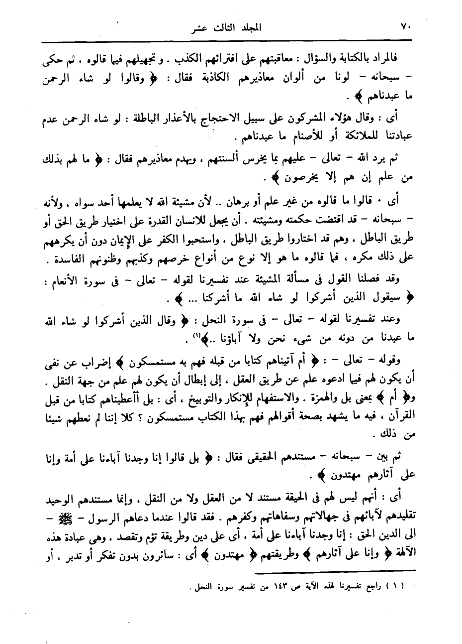وعند تفسيرنا لقوله- تعالى- في سورة النحل: وَقالَ الَّذِينَ أَشْرَكُوا لَوْ شاءَ اللَّهُ ما عَبَدْنا مِنْ دُونِهِ مِنْ شَيْءٍ نَحْنُ وَلا آباؤُنا.. «1» .