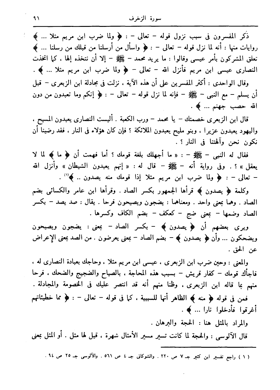 (1) راجع تفسير ابن كثير ج 7 ص 220. والشوكانى ج 4 ص 561. والآلوسى ج 25 ص 94.