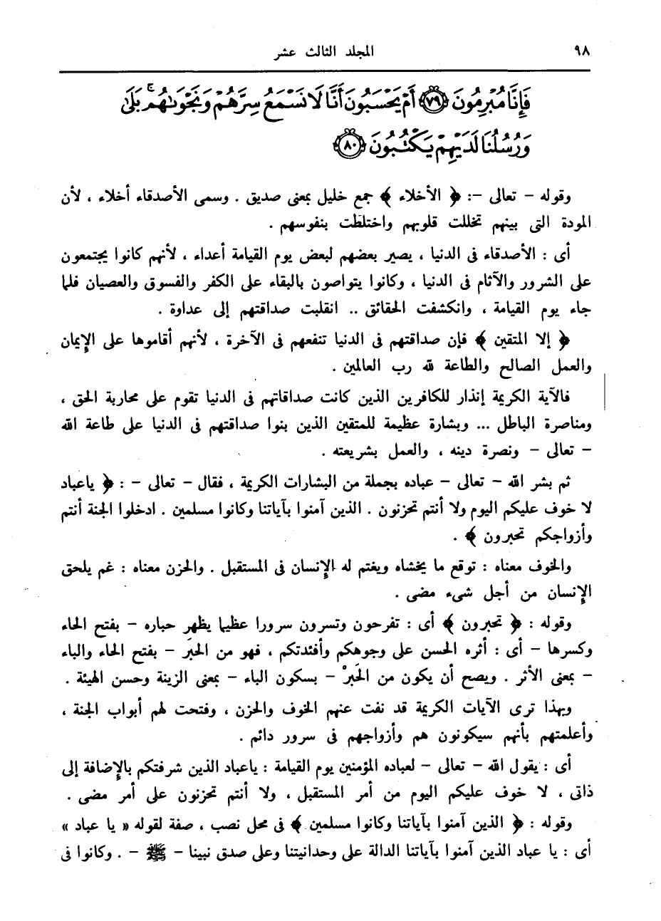 إِلَّا الْمُتَّقِينَ فإن صداقتهم في الدنيا تنفعهم في الآخرة، لأنهم أقاموها على الإيمان والعمل الصالح والطاعة لله رب العالمين.