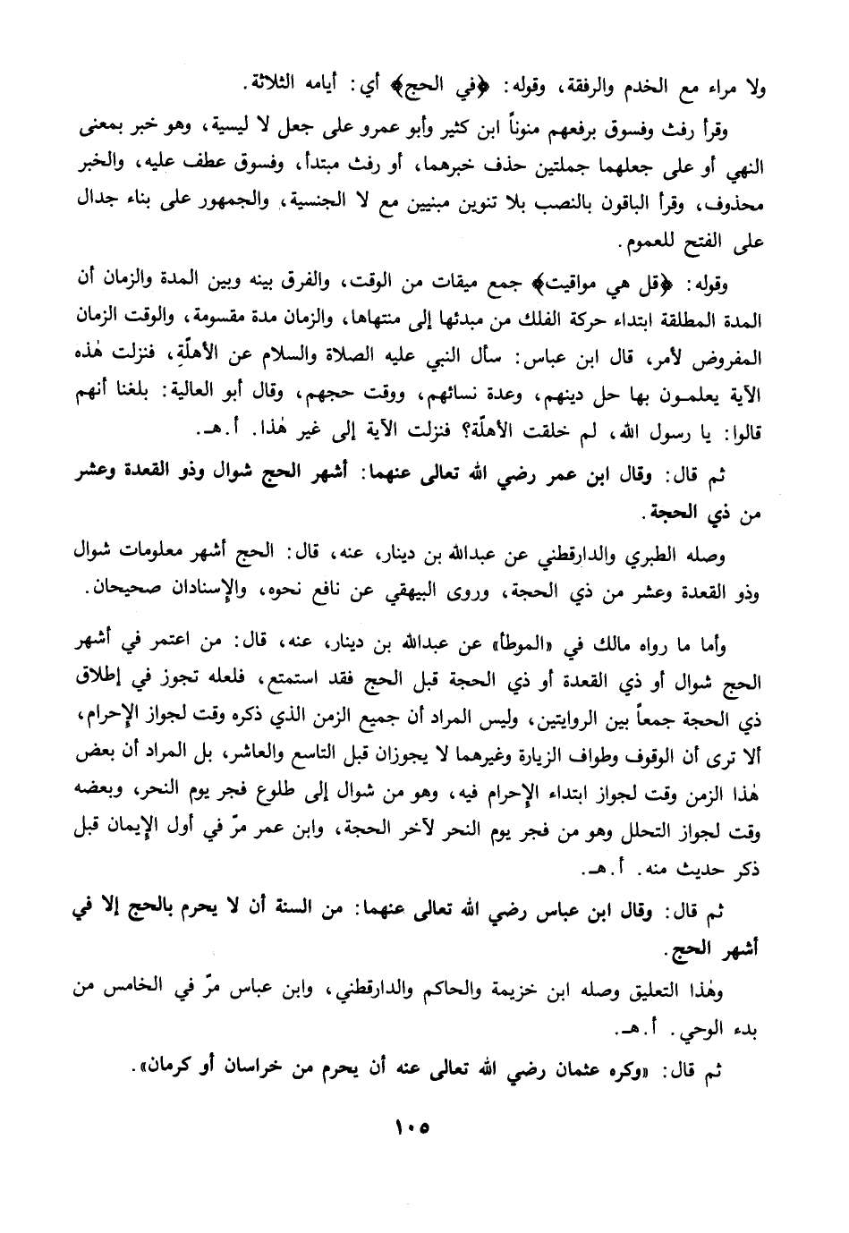 ثم قال: وقال ابن عمر رضي الله تعالى عنهما: أشهر الحج شوال وذو القعدة وعشر كما ذي الحجة.