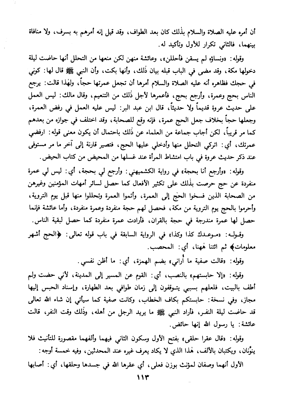وقوله: "ونساؤه لم يسقن فأحللن"، وعائشة منهن لكن منعها من التحلل أنها حاضت ليلة دخولها مكة، وقد مضى في الباب قبله بيان ذلك، وأنها بكت، وأن النبي-صلى الله عليه وسلم- قال لها: كوني في حجك فظاهره أنه عليه الصلاة والسلام أمرها أن تجعل عمرتها حجًا، ولهذا قالت: يرجع الناس بحج وعمرة، وأرجع بحج، فأعمرها لأجل ذلك من التنعيم، وقال مالك: ليس العمل على حديث عروة قديمًا ولا حديثًا، قال ابن عبد البر: ليس عليه العمل في رفض العمرة، وجعلها حجًا بخلاف جعل الحج عمرة، فإنه وقع للصحابة، وقد اختلف في جوازه من بعدهم كما مرَّ قريبًا، لكن أجاب جماعة من العلماء عن ذلك باحتمال أن يكون معنى قوله: ارفضي عمرتك، أي: اتركي التحلل منها وأدخلي عليها الحج، فتصير قارنة إلى آخر ما مرَّ مستوفى عند ذكر حديث عروة في باب امتشاط المرأة عند غسلها من المحيض من كتاب الحيض.