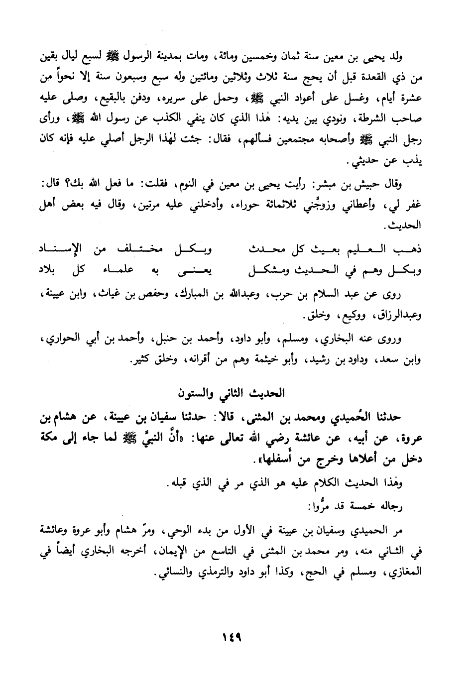 مرَّ الحميدي وسفيان بن عيينة في الأول من بدء الوحي، ومرّ هشام وأبو عروة وعائشة في الثاني منه، ومرَّ محمد بن المثنى في التاسع من الإيمان, أخرجه البخاري أيضًا في المغازي، ومسلم في الحج، وكذا أبو داود والترمذي والنسائي.