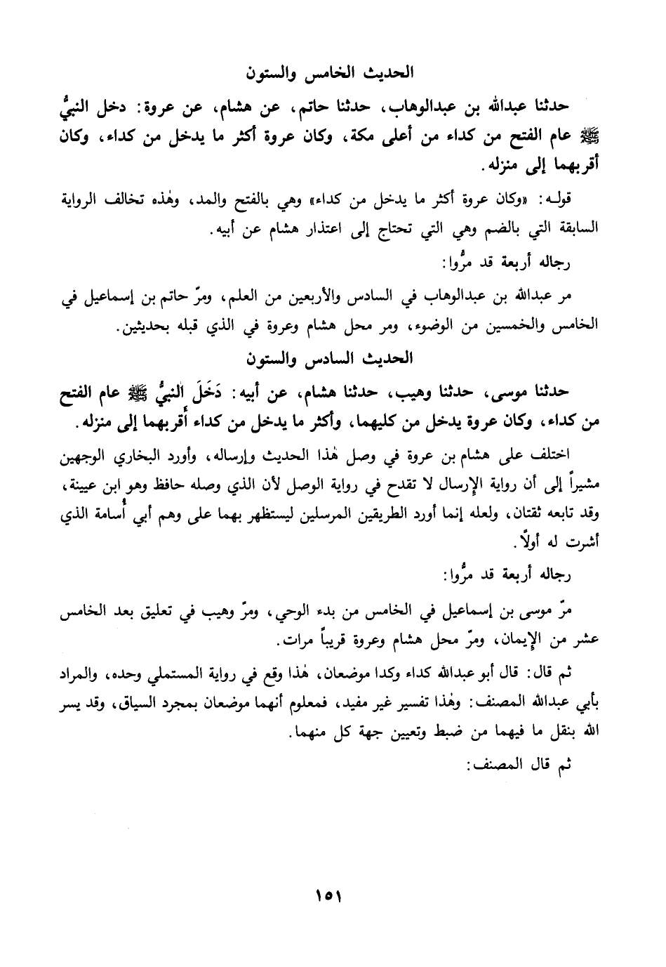مرَّ عبد الله بن عبد الوهاب في السادس والأربعين من العلم، ومرّ حاتم بن إسماعيل في الخامس والخمسين من الوضوء، ومرَّ محل هشام وعروة في الذي قبله بحديثين.
