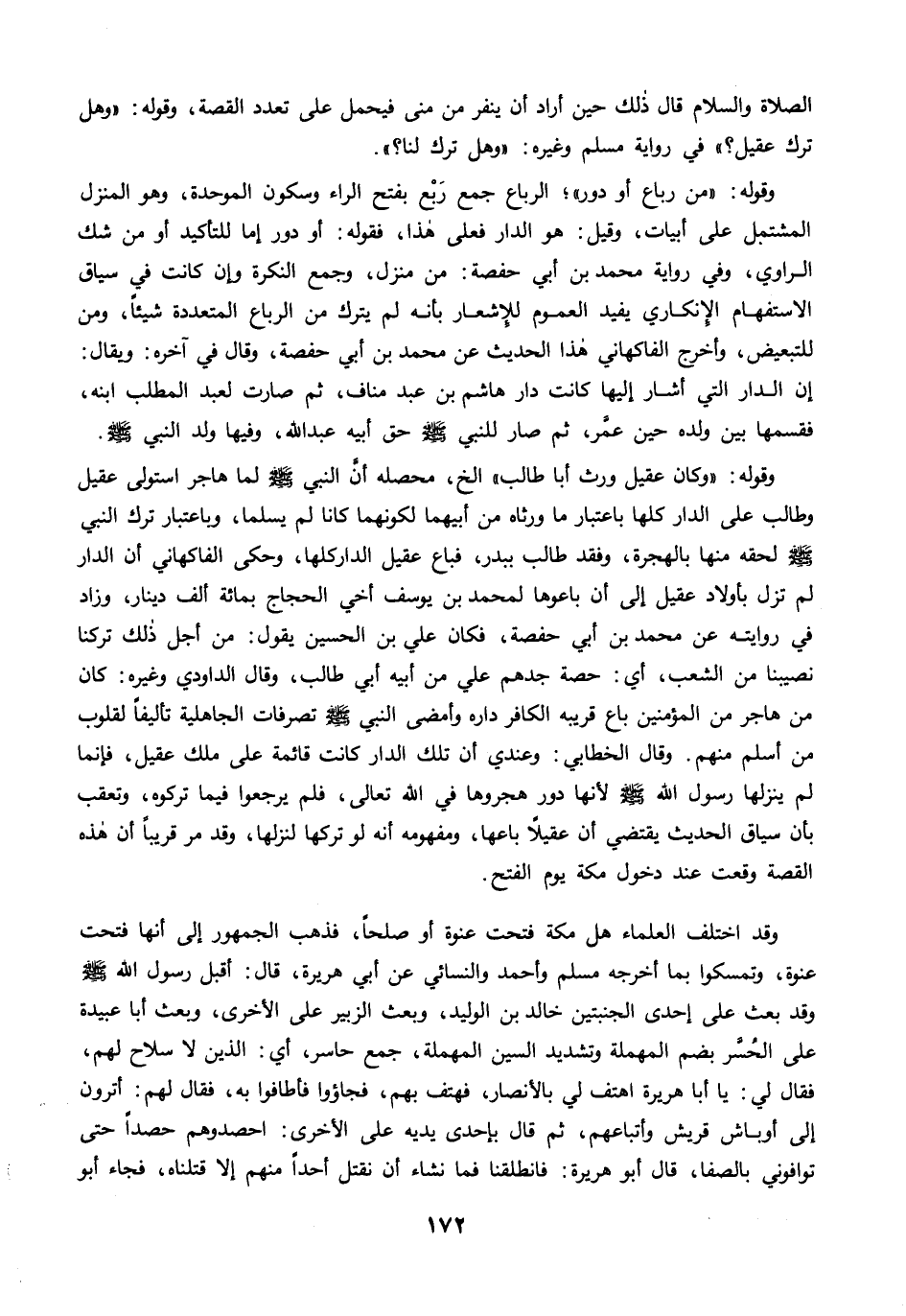 الصلاة والسلام قال ذلك حين أراد أن ينفر من مني فيحمل على تعدد القصة، وقوله: "وهل ترك عقيل؟ " في رواية مسلم وغيره: "وهل ترك لنا؟ ".