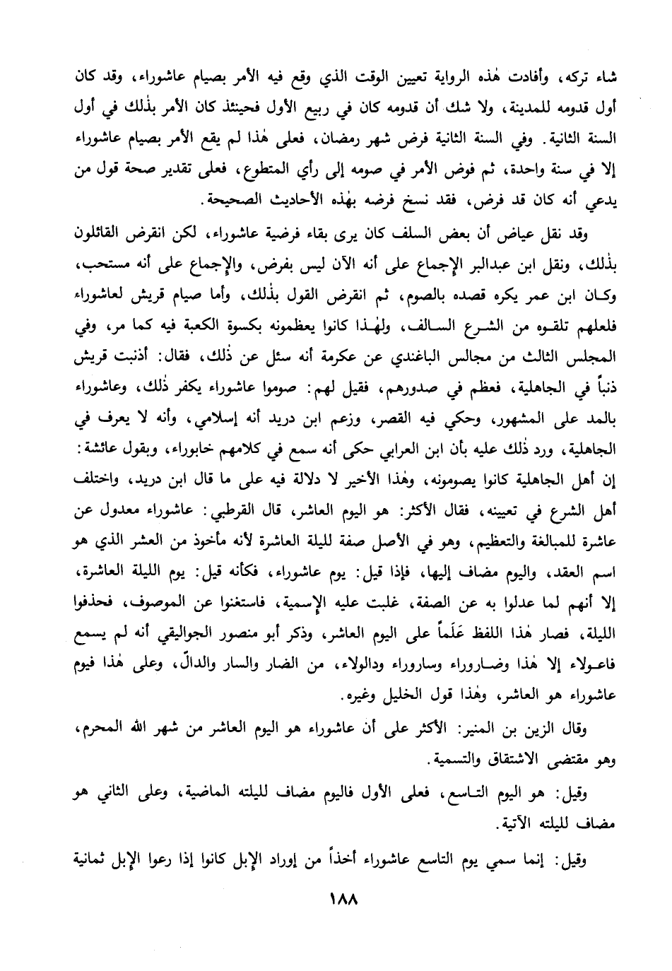 وقال الزين بن المنير: الأكثر على أن عاشوراء هو اليوم العاشر من شهر الله المحرم، وهو مقتضى الاشتقاق والتسمية.