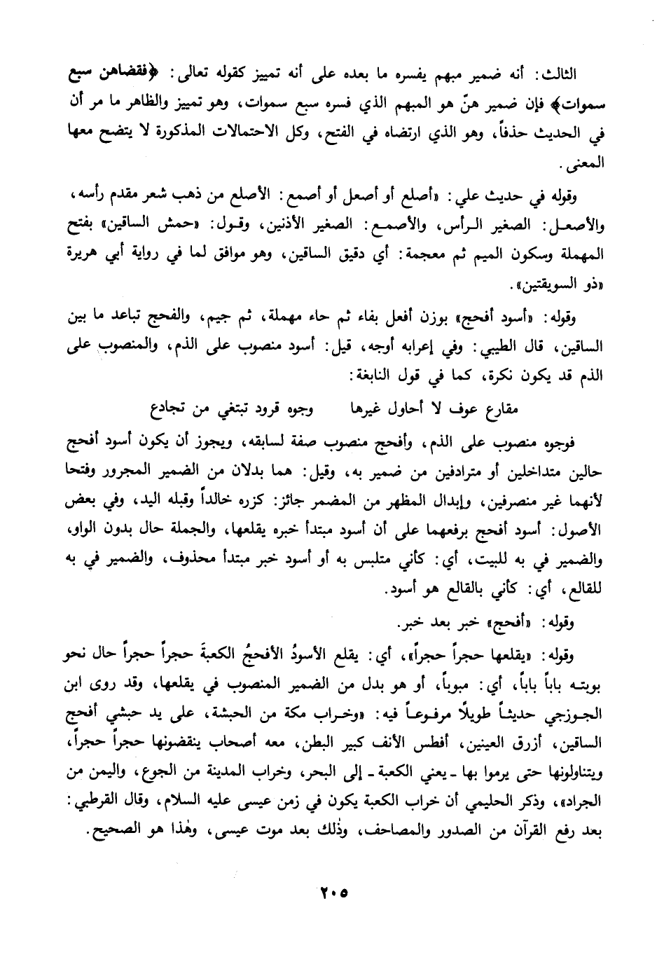 الثالث: أنه ضمير مبهم يفسره ما بعده على أنه تمييز كقوله تعالى: {فَقَضَاهُنَّ سَبْعَ سَمَاوَاتٍ} فإن ضمير هنّ هو المبهم الذي فسره سبع سموات، وهو تمييز والظاهر ما مرَّ أن في الحديث حذفًا، وهو الذي ارتضاه في الفتح، وكل الاحتمالات المذكورة لا يتضح معها المعنى.