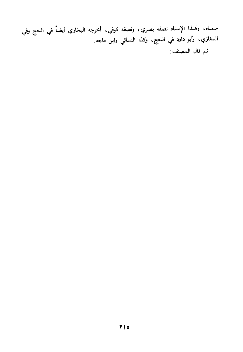 سماه، وهذا الإسناد نصفه بصري، ونصفه كوفي، أخرجه البخاري أيضًا في الحج وفي المغازي، وأبو داود في الحج، وكذا النسائي وابن ماجه.