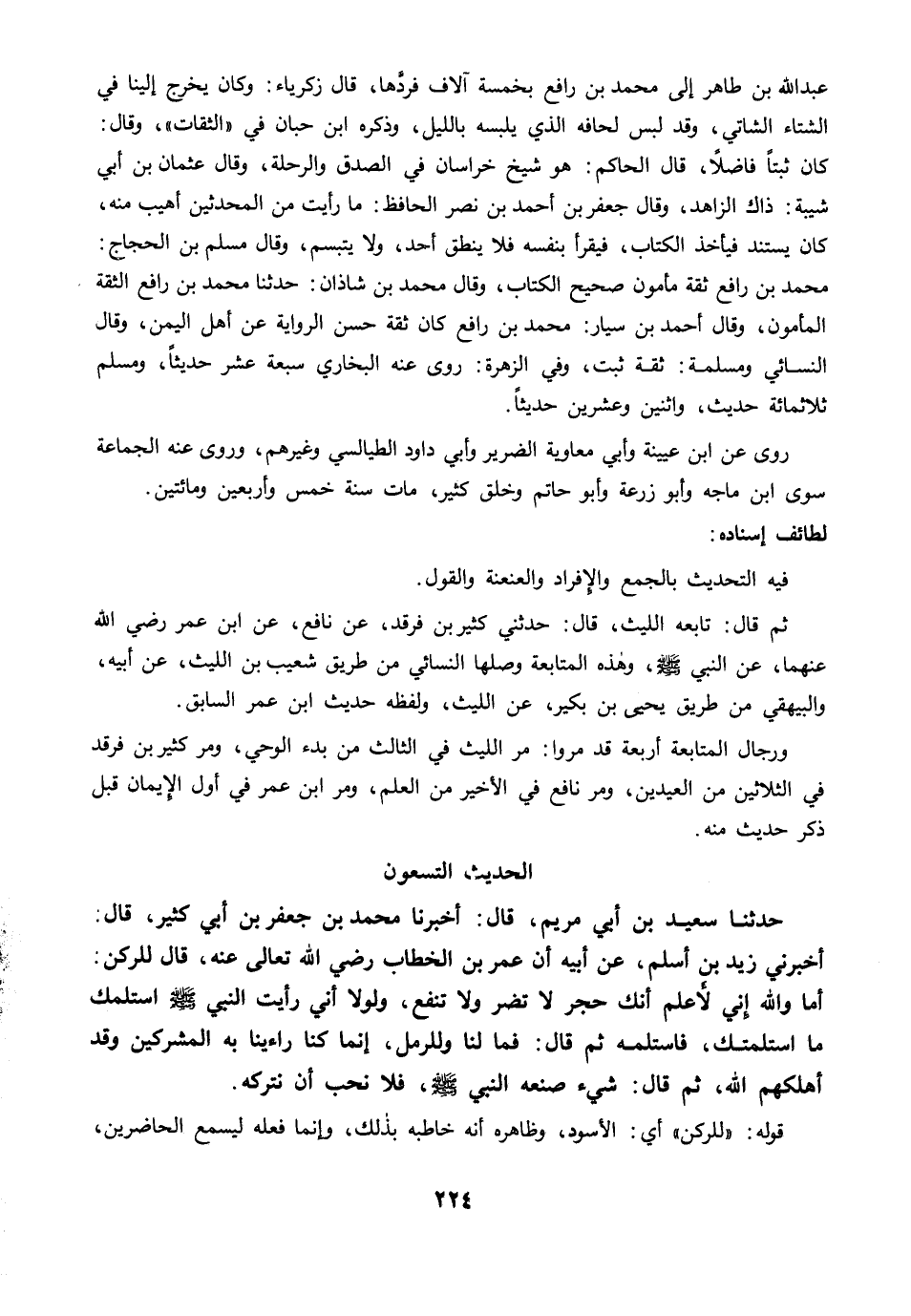 روى عن ابن عيينة وأبي معاوية الضرير وأبي داود الطيالسي وغيرهم، وروى عنه الجماعة سوى ابن ماجه وأبو زرعة وأبو حاتم وخلق كثير، مات سنة خمس وأربعين ومائتين.