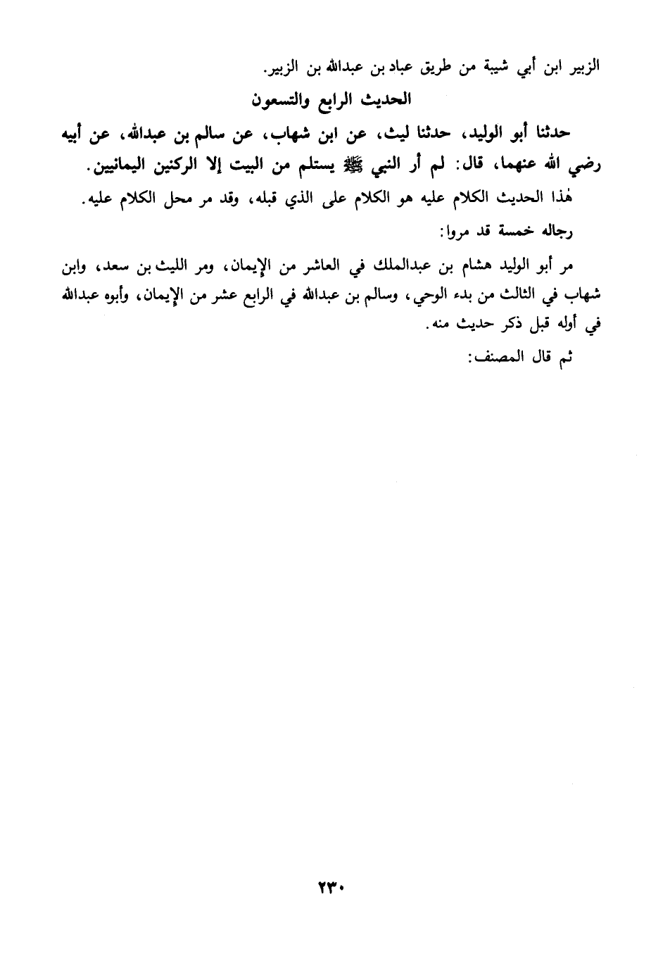 مرَّ أبو الوليد هشام بن عبد الملك في العاشر من الإيمان, ومرَّ الليث بن سعد، وابن شهاب في الثالث من بدء الوحي، وسالم بن عبد الله في الرابع عشر من الإيمان, وأبوه عبد الله في أوله قبل ذكر حديث منه.